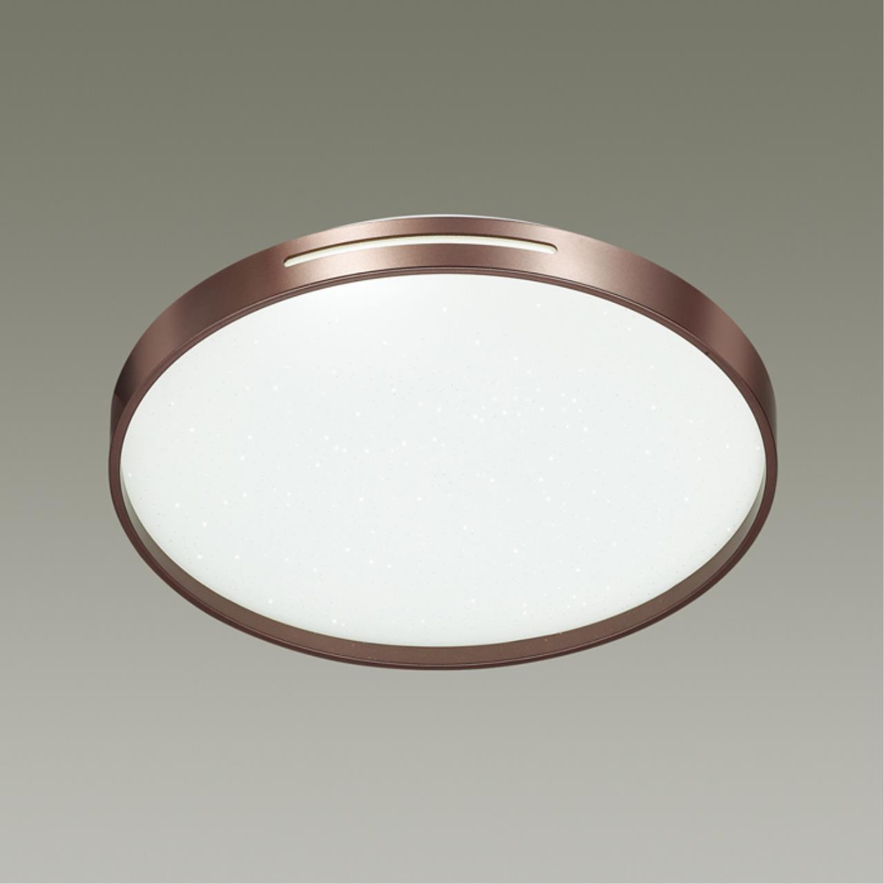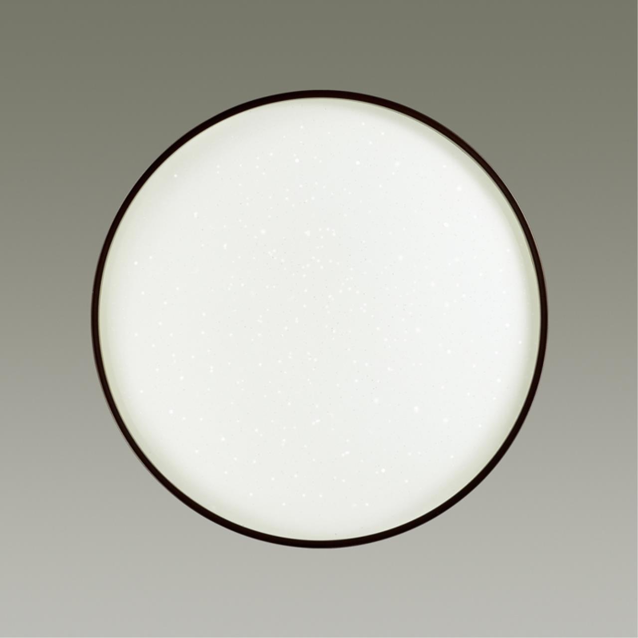 Светильник 2075/DL линии GETA COFFEE состоит из металлического основания (базы) и пластикового рассеивателя. Материал рассеивателя - высококачественный акрил белого цвета с глянцевой поверхностью, обеспечивающий светильнику равномерное рассеивание и хорошее светопропускание. Форма плафона: круглая, декорирована коричневым ободом из пластика и рисунком в виде прозрачных точек, которые придают включенному светильнику красивый эффект "звездного мерцания" и переливания. Степень защиты IP43 позволяет использовать светильник в определенных зонах влажных помещений. В комплект входит заменяемый LED модуль с линзами, мощностью 48Вт, которая соответствует лампе накаливания 430Вт. А также пульт ДУ, с помощью которого осуществляется плавное изменение цветовой температуры 3000-6300К, изменение яркости, переход в режим переключения теплого/белого/холодного/ночного света. Светильник имеет функцию "память".