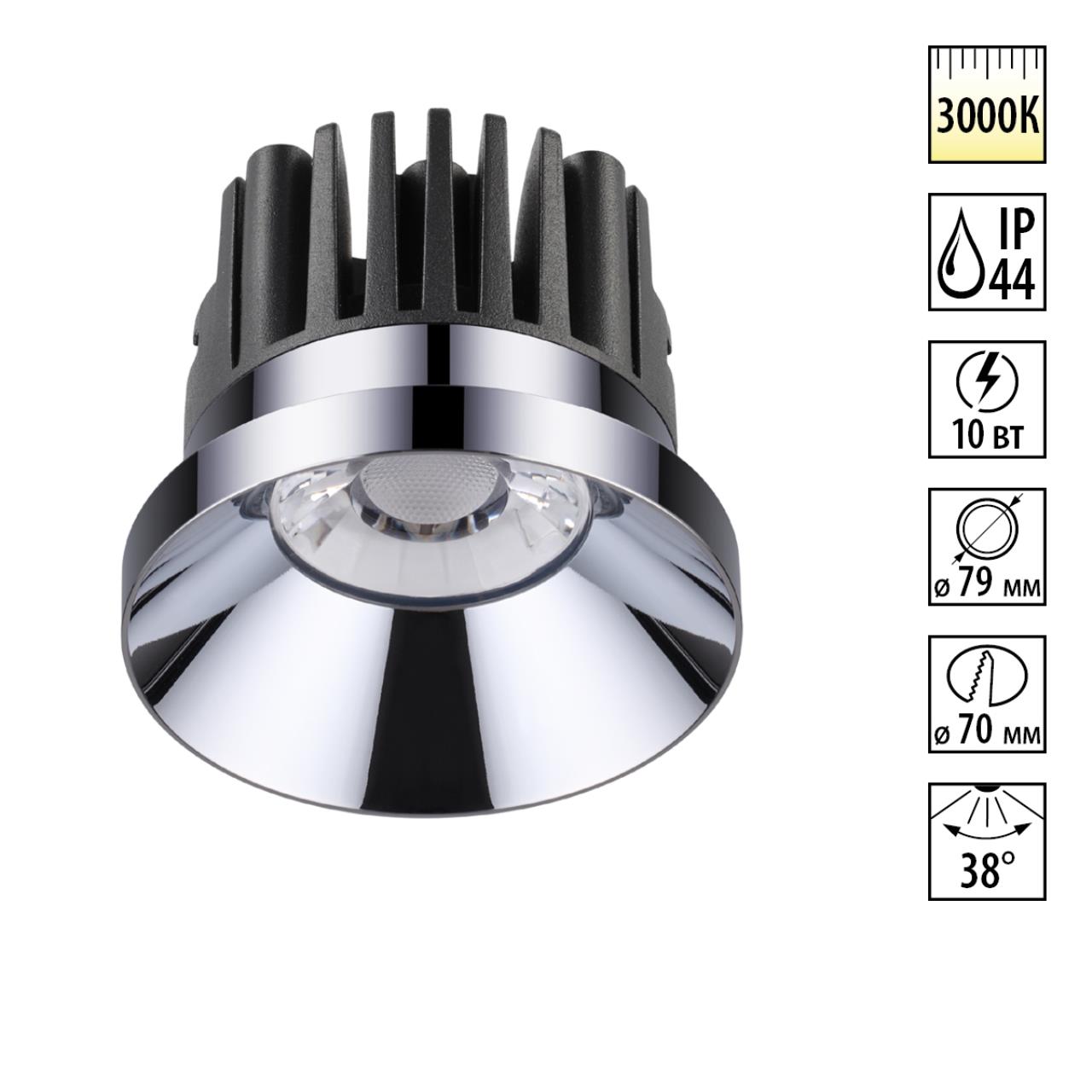 Светодиодный встраиваемый неповоротный светильник с повышенной степенью пылевлагозащиты (IP44) подходит для установки во влажные помещения.