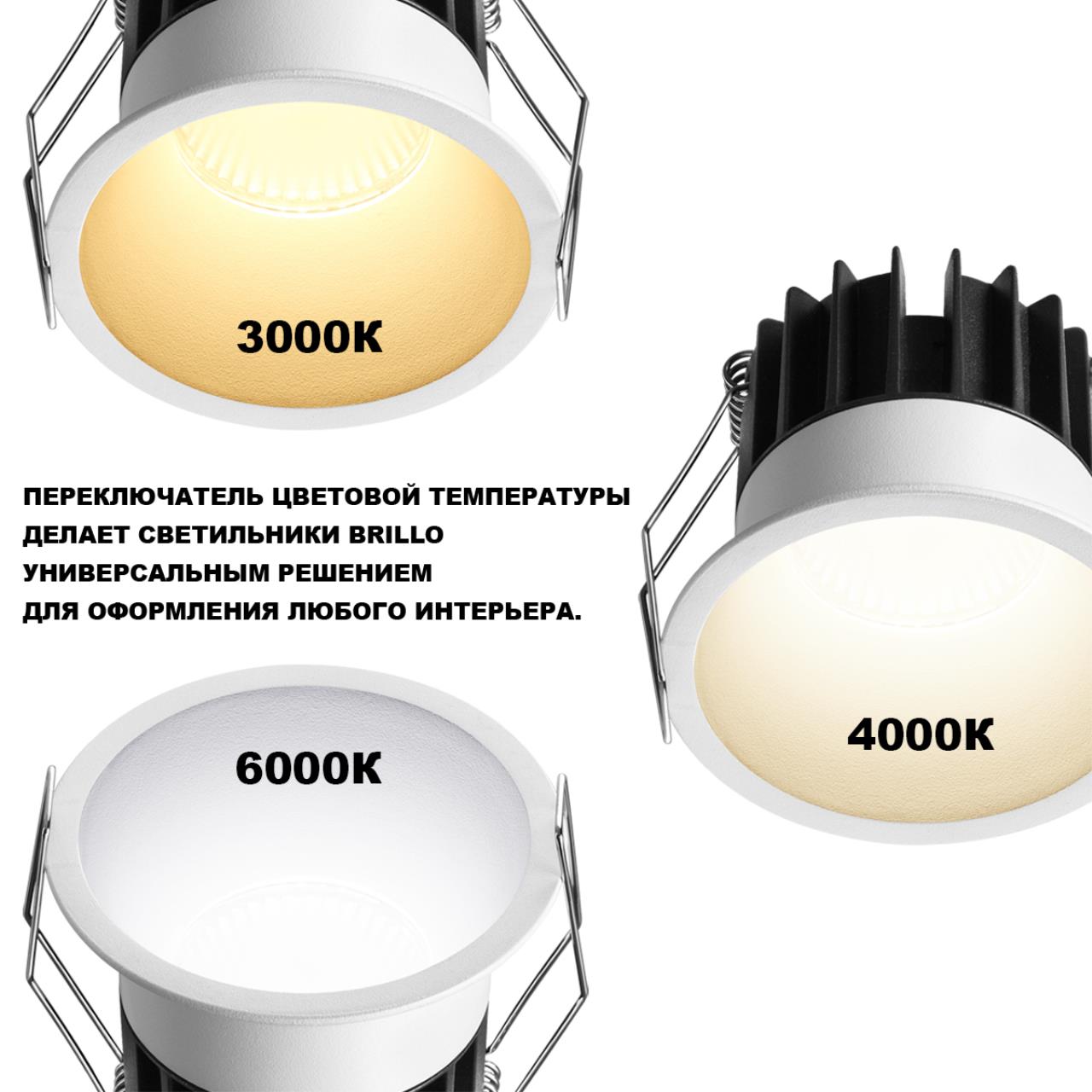 Представляем вам встраиваемые LED-светильники BRILLO, которые совмещают в себе современные инженерные решения с утончённым дизайном, формируя атмосферу гармонии, тепла и удобства в каждом доме. Особый интерес вызывает функция переключения цветовой температуры (3000K/4000K/6000K), которая позволяет настраивать нужное освещение простым нажатием кнопки на драйвере. Оптимально подобранный угол рассеивания 40° совместно с низким уровнем дискомфорта (UGR <16) обеспечивают равномерное распределение света и исключают возникновение утомляющих бликов. Минималистичный дизайн и два цвета корпуса позволяют светильникам BRILLO идеально вписываться в любые стилистические решения интерьера: строгий матовый черный подчеркивает изысканность и роскошь пространства, а классический белый добавляет легкость оформлению. Таким образом, встраиваемые светильники BRILLO объединяют достижения современных технологий и вдохновляющую эстетику, делая ваш дом особенным местом, исполненным стиля и функциональности.