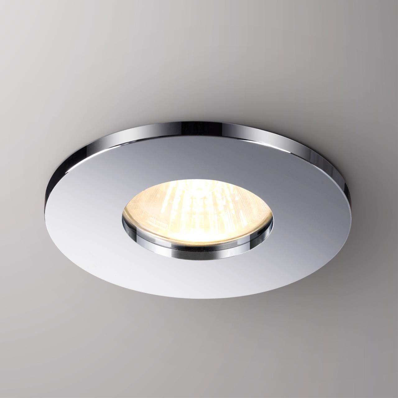 Встраиваемый неповоротный светильник с повышенной степенью пылевлагозащиты (IP44) подходит для установки во влажные помещения. Лампа в комплект не входит.