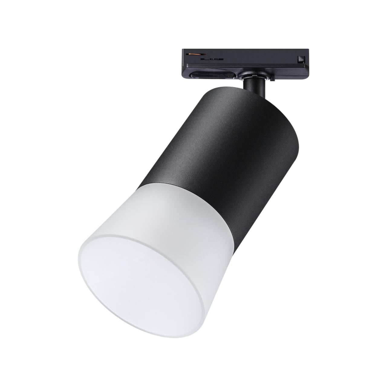 Светильник трековый для однофазного двухжильного (универсального) шинопровода. В корпусе светильника есть акриловые части, поэтому его используют только с LED лампой max.9Вт.