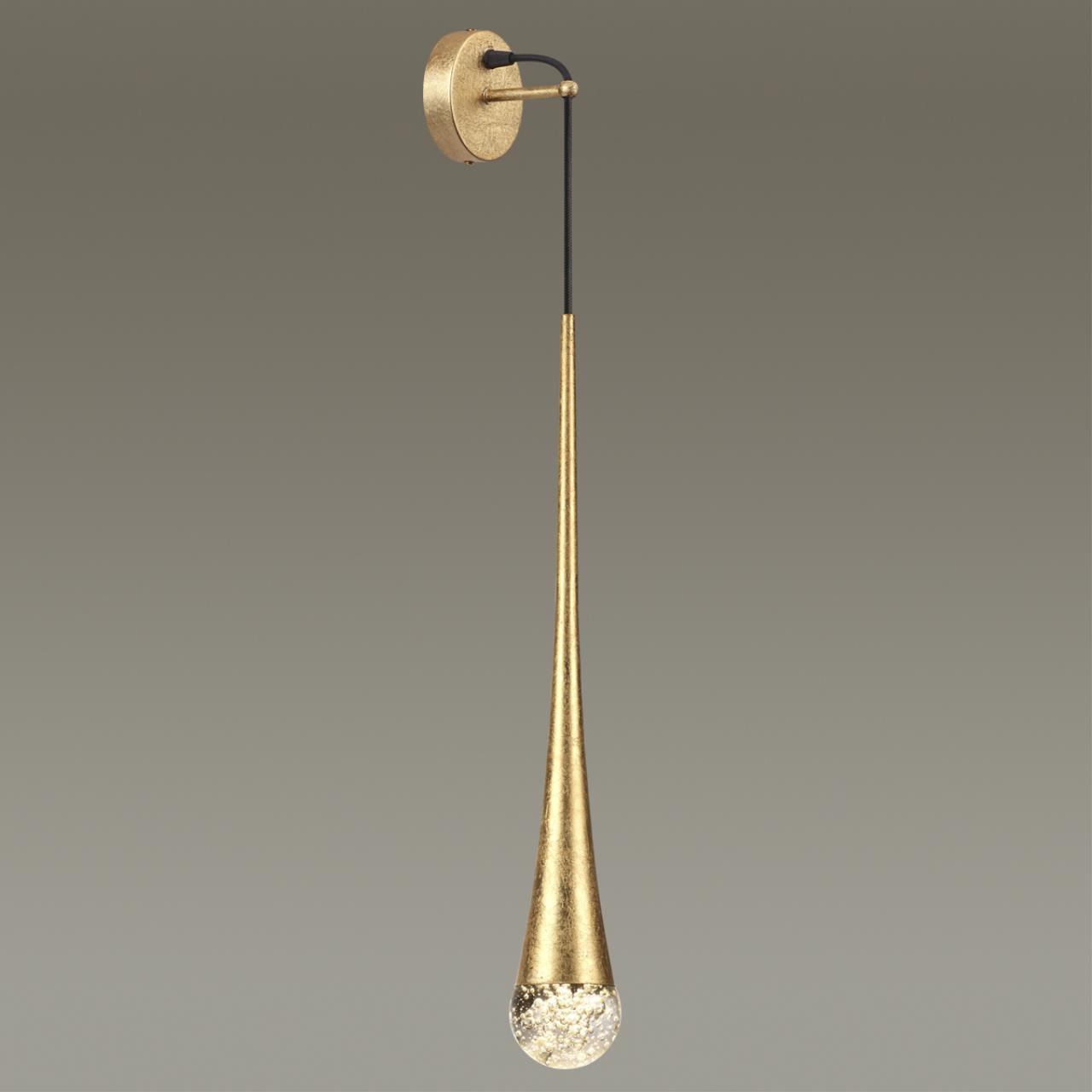Золотая капля Gota — идеальный золотой акцент в вашем интерьере. Солнечные блики, заключенные в изящном золотистом цвете фольгирования, оживляют любое пространство, заставляя его сиять роскошью и аристократичностью. Особенно эффектно смотрится шар-рассеиватель из хрустального стекла с эффектом пузырьков, подсвеченный сверху лампой. Светильники можно использовать в виде композиции с плафонами на разных уровнях. Для выбора есть также настенный светильник в такой же природной изящной форме капли.