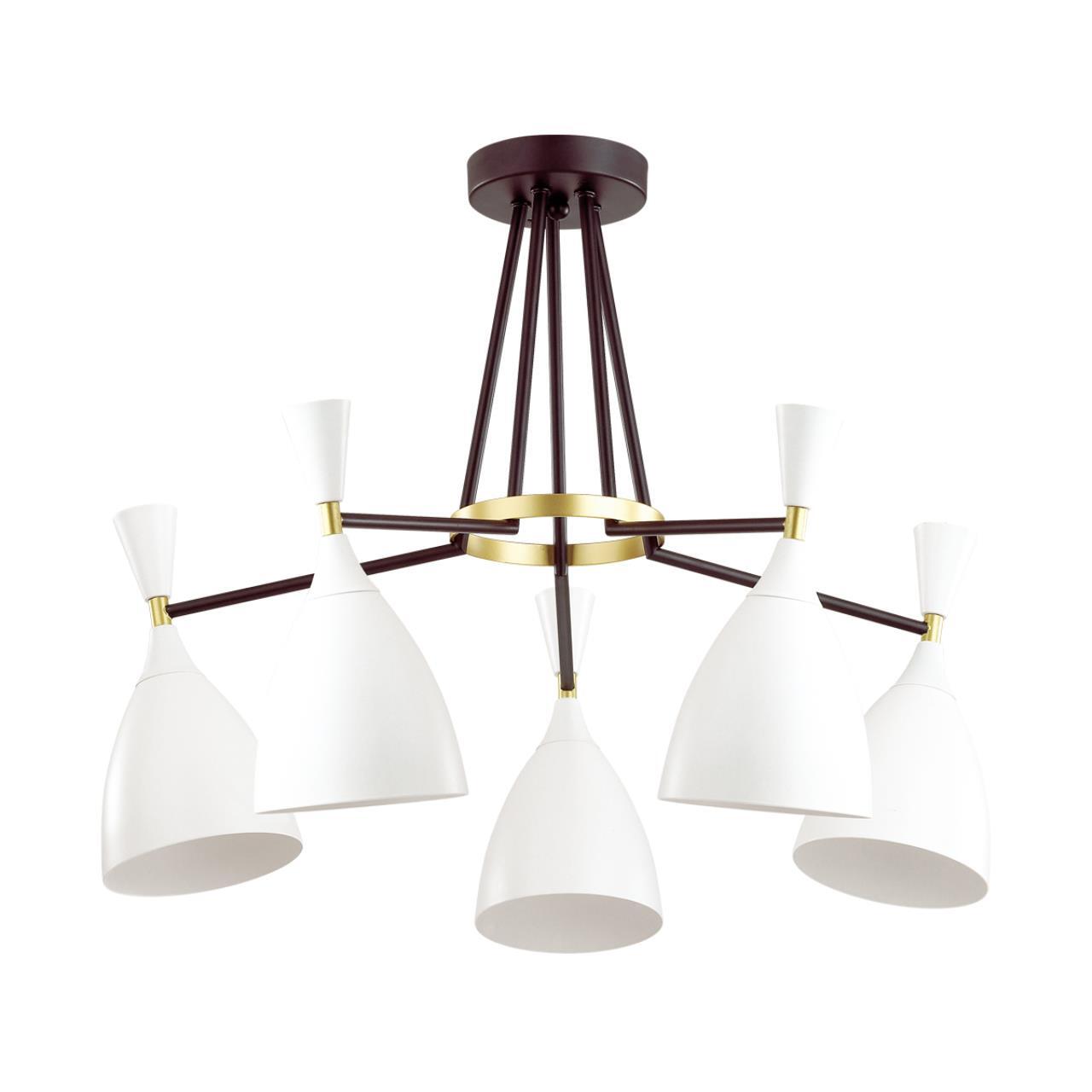 Металлический плафон линии Oliver имеет лаконичную форму в стиле ретро. Черное основание украшено декоративным кольцом золотого цвета, которое будто опоясывает рожки, придавая люстре форму. Отлично подойдет для интерьера кухни, гостиной или спальни.