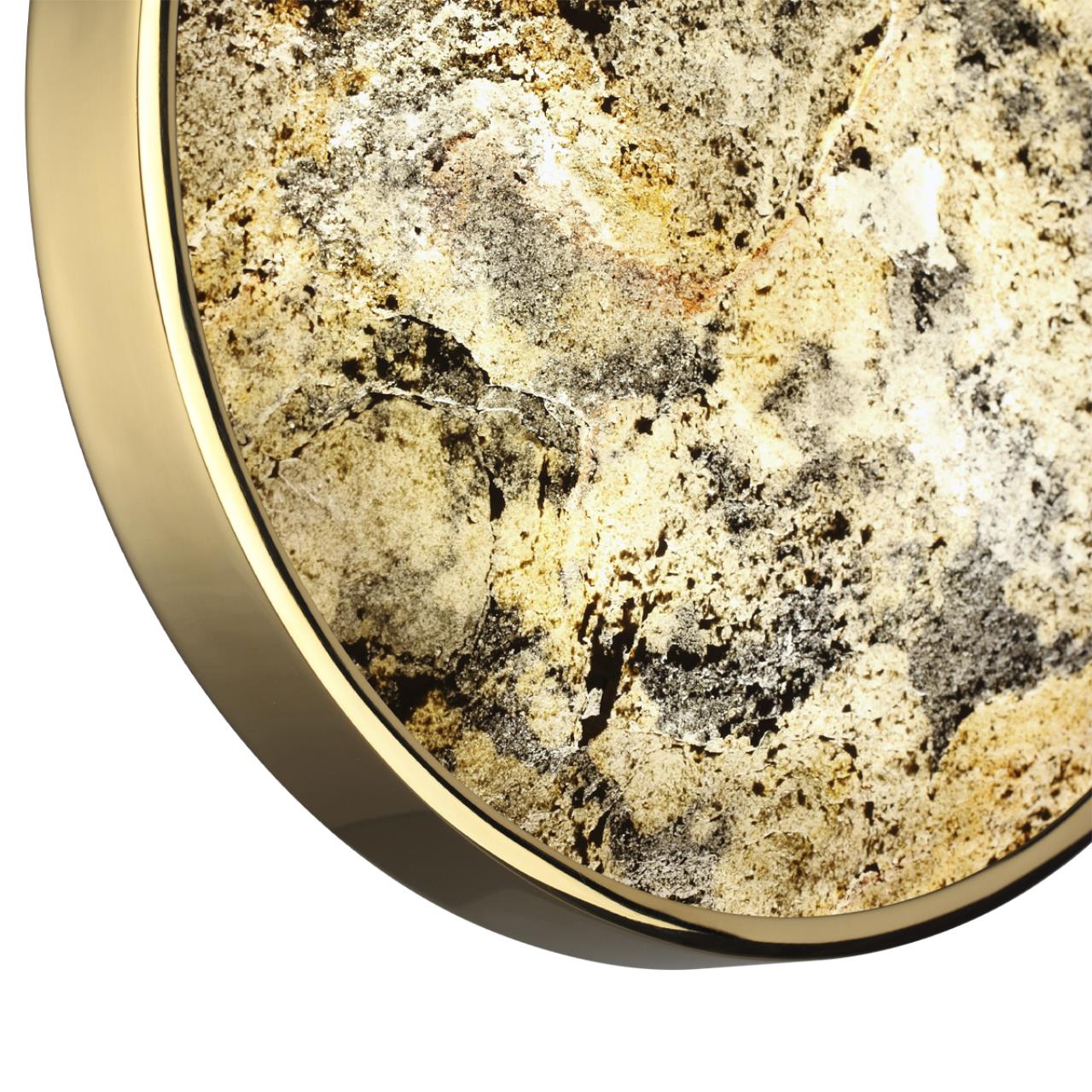 Наряду с моделями с лампой Е27 в линии Bergi есть светодиодные светильники: настенно-потолочные светильники диаметром 300, 400, 500 и 600 мм, бра, подвес с рассеивателем из натурального природного материала — stone flake, в переводе «каменные хлопья». Тончайший срез (слой) каменной породы наносится на пластиковую подложку для придания формы плафону. Уникальность этого материала в том, что сохраняется красивая природная структура камня с ее неровностями и наслоениями, поэтому поверхность слегка шероховатая. В разных цветовых температурах цвет плафона имеет разный оттенок, и каждый может выбрать ту цветовую температуру, которая подходит для интерьера. Для удобства выбора цветовой температуры в светильниках есть переключатель с выбором 3000, 4000 и 6000 К. Светодиодный подвес линии Bergi оснащен шарниром, который позволяет фиксировать различный наклон плафона и создавать красивые композиции. Черный матовый цвет арматуры подчеркивает современный образ линии.