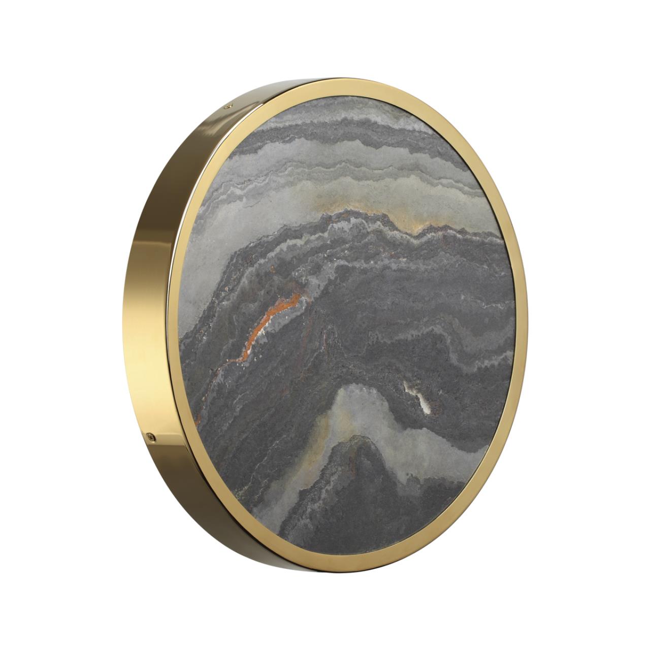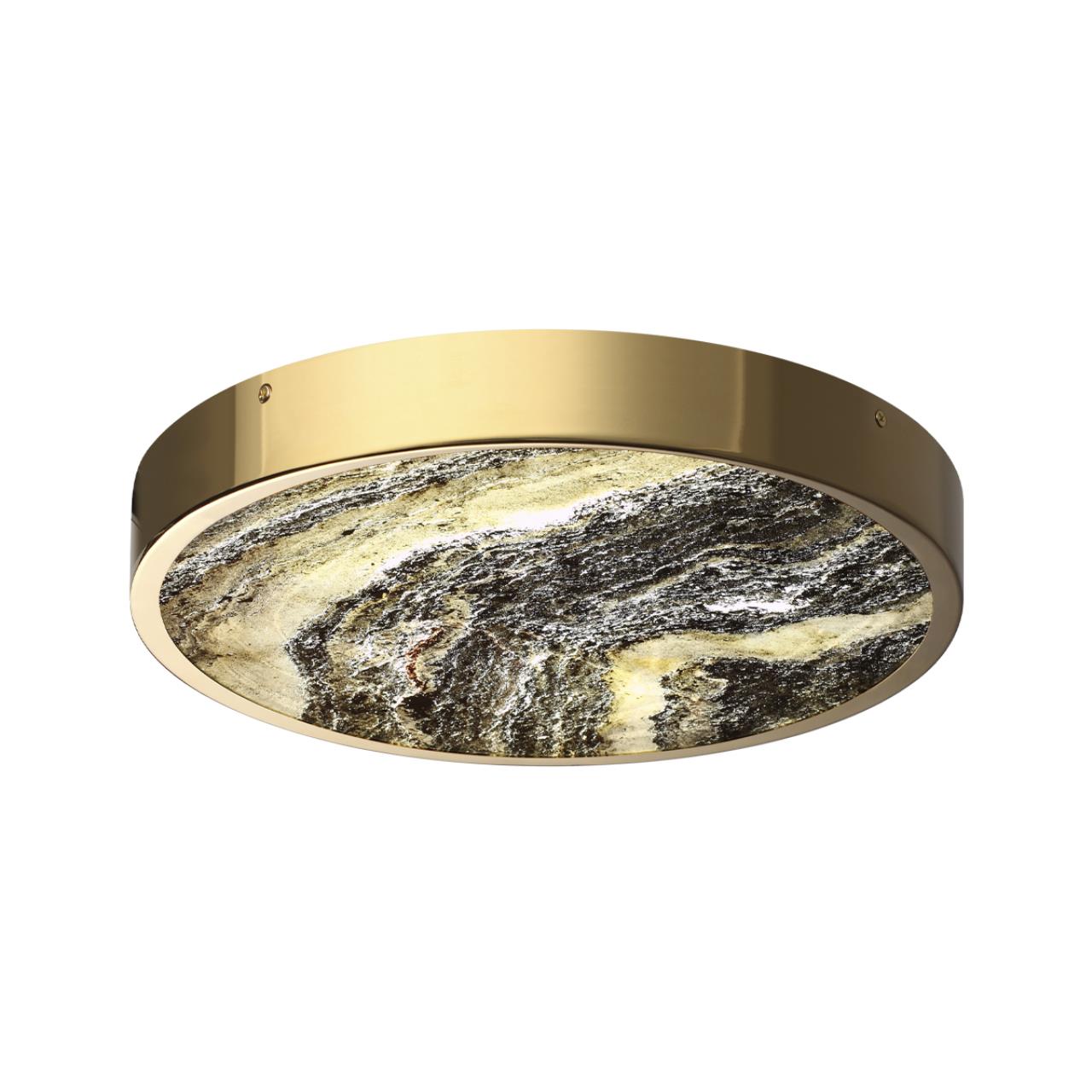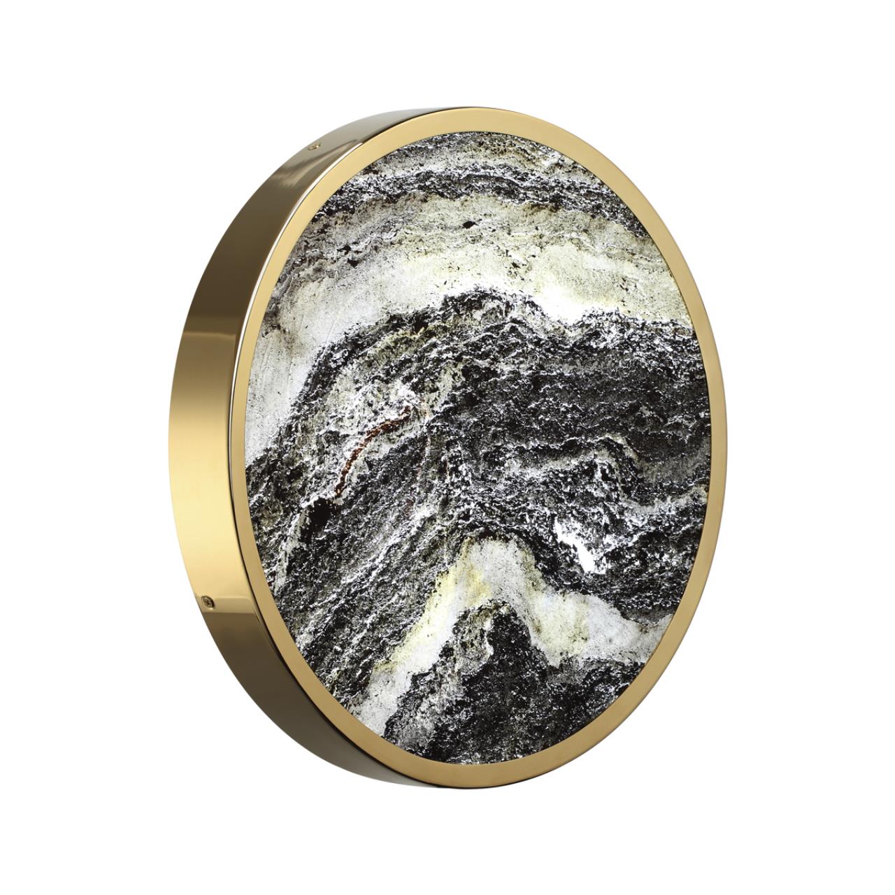 Наряду с моделями с лампой Е27 в линии Bergi есть светодиодные светильники: настенно-потолочные светильники диаметром 300, 400, 500 и 600 мм, бра, подвес с рассеивателем из натурального природного материала — stone flake, в переводе «каменные хлопья». Тончайший срез (слой) каменной породы наносится на пластиковую подложку для придания формы плафону. Уникальность этого материала в том, что сохраняется красивая природная структура камня с ее неровностями и наслоениями, поэтому поверхность слегка шероховатая. В разных цветовых температурах цвет плафона имеет разный оттенок, и каждый может выбрать ту цветовую температуру, которая подходит для интерьера. Для удобства выбора цветовой температуры в светильниках есть переключатель с выбором 3000, 4000 и 6000 К. Светодиодный подвес линии Bergi оснащен шарниром, который позволяет фиксировать различный наклон плафона и создавать красивые композиции. Черный матовый цвет арматуры подчеркивает современный образ линии.