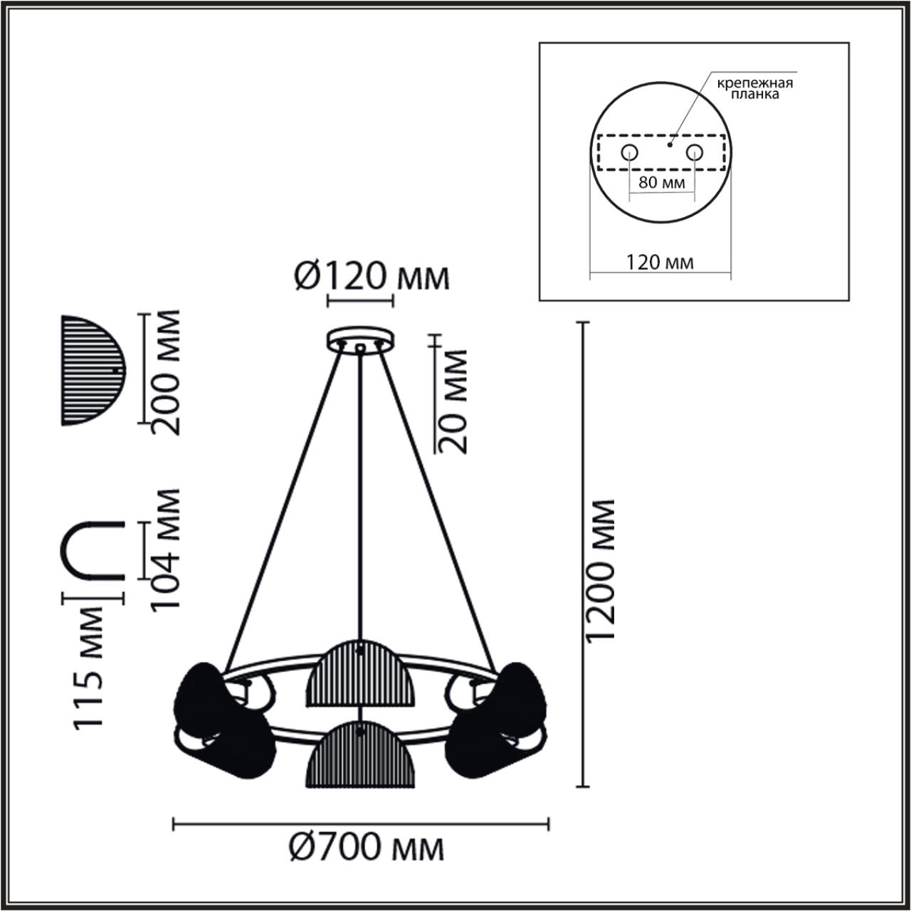Светильник Высота без цепи, мм