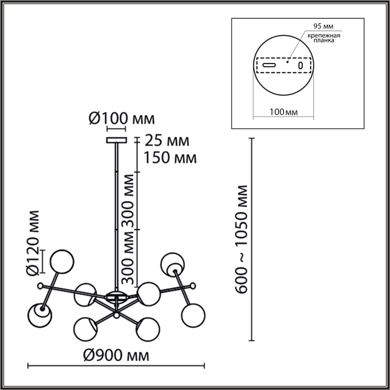 Светильник Высота без цепи, мм