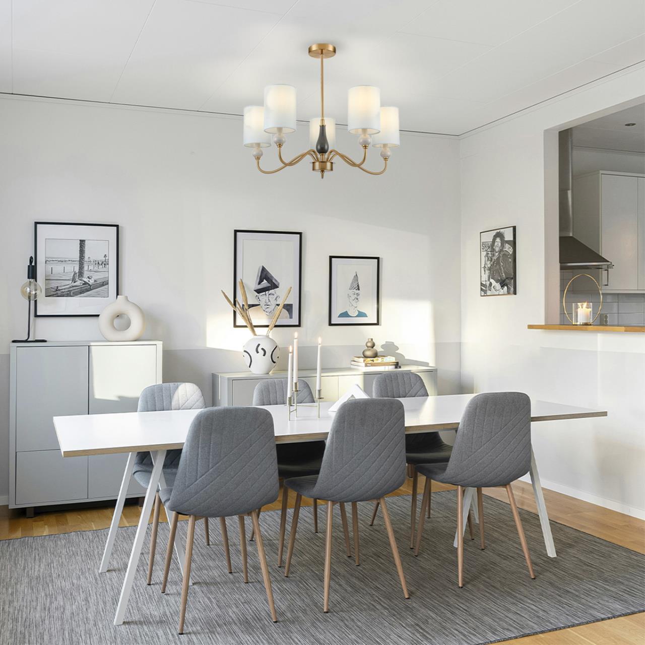 Если ваш интерьер выдержан в классическом стиле, светильники ANRI добавят ему утонченности.Коллекция сочетает в себе металлический каркас цвета латунь с элегантными керамическими деталями белого цвета, придающими светильникам благородный вид. Плафоны выполнены из текстиля нежного мятного зеленого оттенка, что добавляет композиции свежести и легкости.Светильники серии ANRI доступны в вариантах на 5 и 8 ламп. Плавные линии делают их универсальными для использования в гостиных, столовых и спальнях. Декоративный керамический элемент темно-серого цвета, расположенный в центре конструкции, не только добавляет эстетический акцент светильникам, но и гармонично объединяет все его компоненты. Настенные бра ANRI дополняют общий образ интерьера, создавая идеально мягкое освещение для уютных уголков и коридоров.