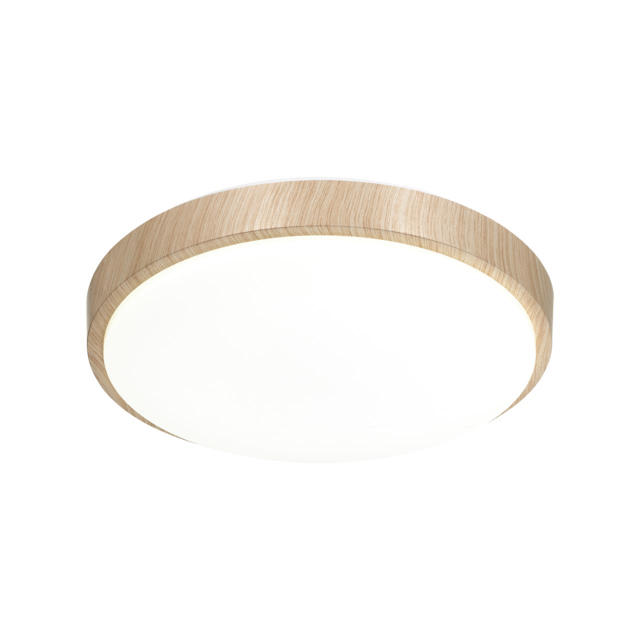 Светильник 7607/EL линии LOSTA состоит из металлического основания (базы) и пластикового рассеивателя. Материал рассеивателя - высококачественный пластик марки PMMA 2.0 белого цвета с матовой поверхностью без текстуры. Пластик обеспечивает светильнику равномерное рассеивание и хорошее светопропускание. Форма плафона: круглая, декорирована ободом из пластика бежевого цвета под дерево. Степень защиты IP43 позволяет использовать светильник в определенных зонах влажных помещений. В комплект входит заменяемый LED-модуль с линзами мощностью 72 Вт, соответствующей лампе накаливания 730 Вт, а также пульт ДУ, с помощью которого осуществляется плавное изменение цветовой температуры в диапазоне 3000—6300 К, изменение яркости, переход в режим переключения теплого/белого/холодного/ночного света. Светильник имеет функцию памяти.