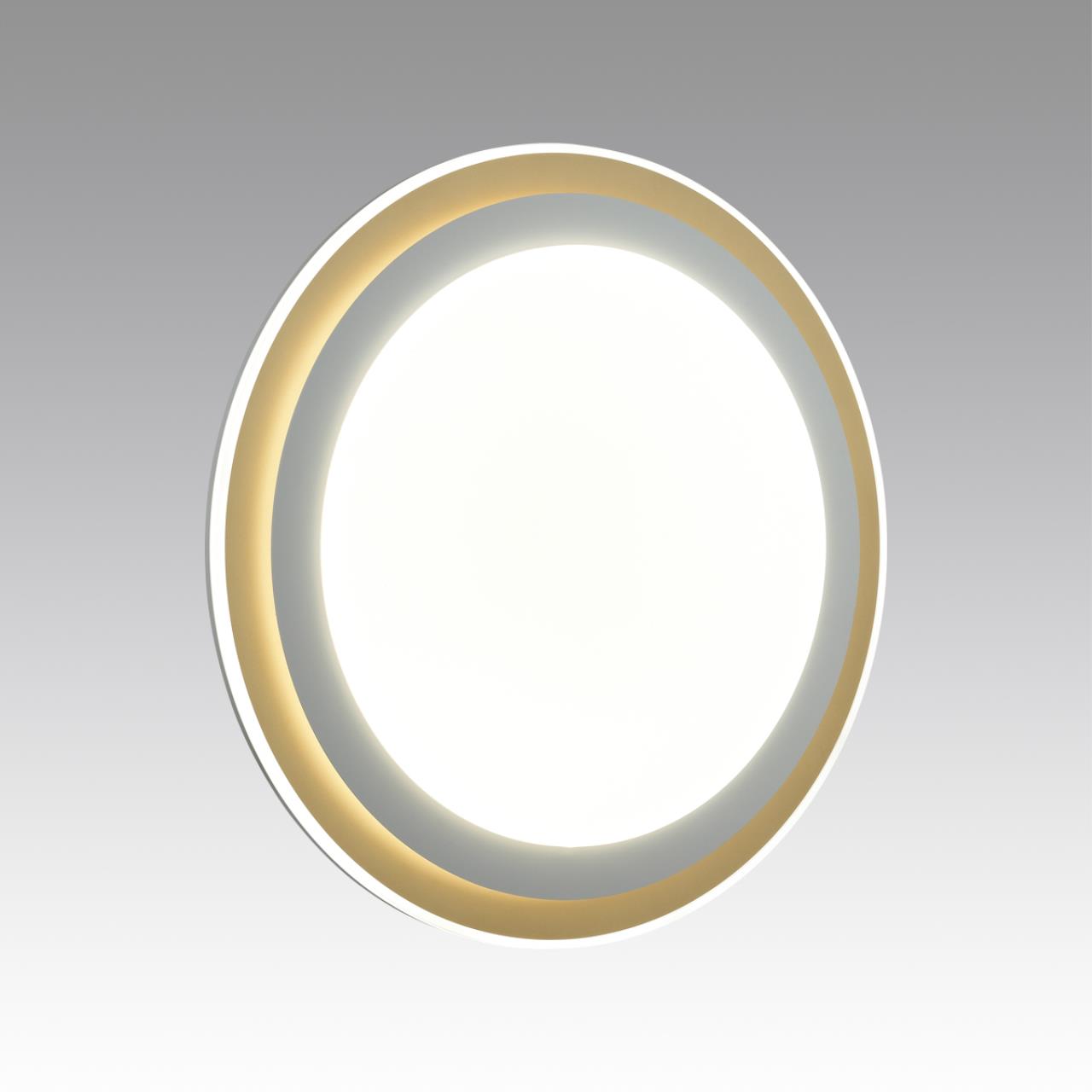 Светильник 7630/DL линии SETTA состоит из металлического основания (базы) и пластикового рассеивателя. Материал рассеивателя — качественный акрил белого цвета с матовой поверхностью без текстуры. Пластик обеспечивает светильнику равномерное рассеивание и хорошее светопропускание. Форма плафона: круглая, декорирована многослойным ободом из пластика белого и золотистого цветов. Степень защиты IP43 позволяет использовать светильник в определенных зонах влажных помещений. В комплект входит заменяемый LED-модуль с линзами мощностью 48 Вт, соответствующей лампе накаливания 430 Вт, а также пульт ДУ, с помощью которого осуществляется плавное изменение цветовой температуры в диапазоне 3000—6300 К, изменение яркости, переход в режим переключения теплого/белого/холодного/ночного света. Светильник имеет функцию памяти.