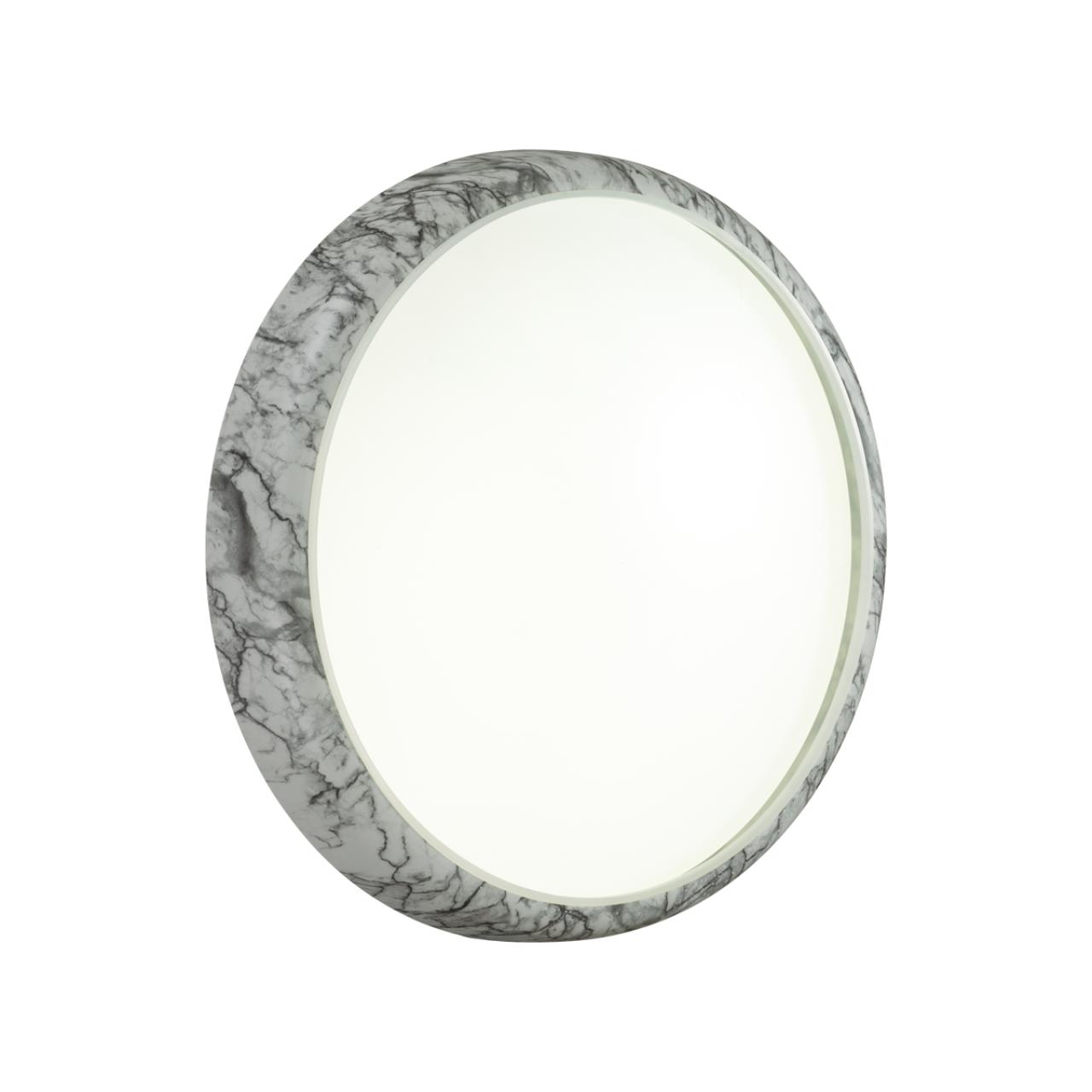 Светильник 7638/DL линии MRAMO WHITE состоит из металлического основания (базы) и пластикового рассеивателя. Материал рассеивателя — высококачественный пластик марки PMMA 2.0 белого цвета с матовой поверхностью без текстуры. Пластик обеспечивает светильнику равномерное рассеивание и хорошее светопропускание. Форма плафона: круглая, декорирована ободом "под мрамор" из пластика белого и черного цветов. Степень защиты IP43 позволяет использовать светильник в определенных зонах влажных помещений. В комплект входит заменяемый LED-модуль с линзами мощностью 48 Вт, соответствующей лампе накаливания 460 Вт. Источник света имеет комфортную цветовую температуру 4000 К (белый свет).