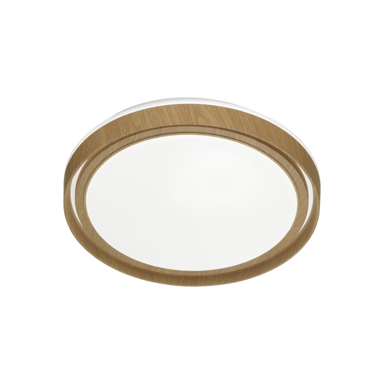 Светильник 7640/EL линии RUX WOOD состоит из металлического основания (базы) и пластикового рассеивателя. Материал рассеивателя — высококачественный пластик марки PMMA 2.0 белого цвета с матовой поверхностью, обеспечивающий светильнику равномерное рассеивание и хорошее светопропускание. Форма плафона: круглая, декорирована ободом под дерево из пластика коричневого цвета. Степень защиты IP43 позволяет использовать светильник в определенных зонах влажных помещений. В комплект входит заменяемый LED-модуль с линзами мощностью 70 Вт, соответствующей лампе накаливания 610 Вт, а также пульт ДУ (с креплением на стену), с помощью которого осуществляется плавное изменение цветовой температуры в диапазоне 3000—6000 К, изменение яркости, переход в режим переключения теплого/белого/холодного/ночного света. Светильник имеет функцию памяти.