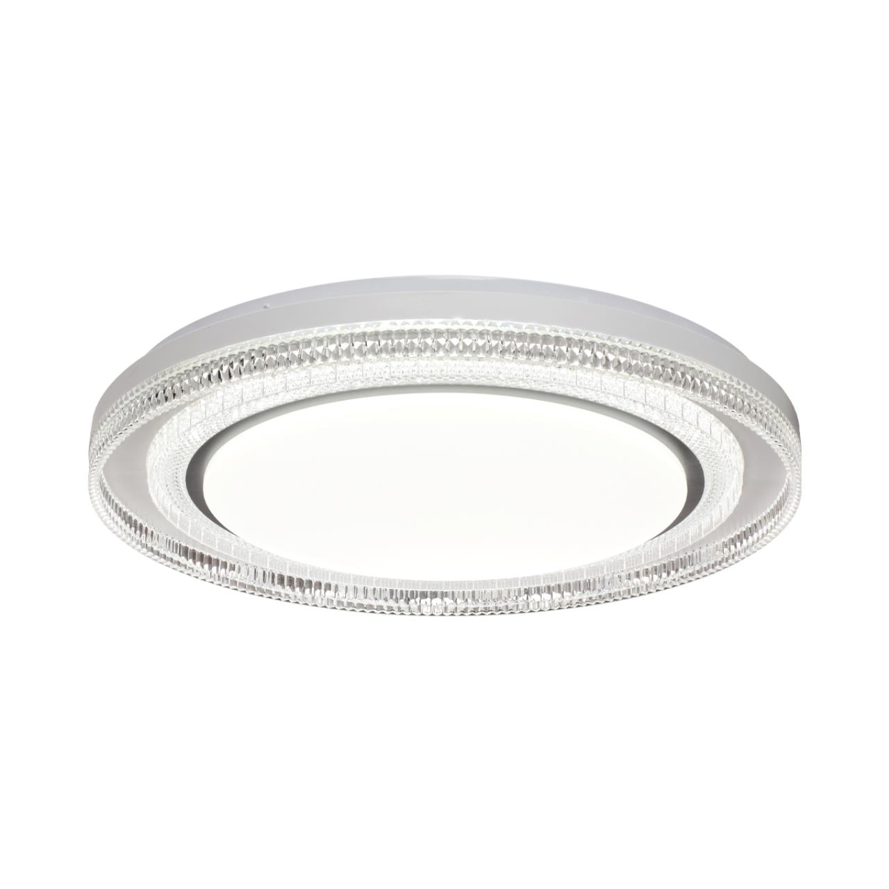 Светильник 7642/EL линии SUZY SILVER состоит из металлического основания (базы) и пластикового рассеивателя. Материал рассеивателя — высококачественный пластик марки PMMA 2.0 белого цвета с матовой поверхностью без текстуры. Пластик обеспечивает светильнику равномерное рассеивание и хорошее светопропускание. Форма плафона: круглая, декорирована ободом под хрусталь из пластика прозрачного цвета. Обод украшен пластиковым кантом серебристого цвета. Степень защиты IP43 позволяет использовать светильник в определенных зонах влажных помещений. В комплект входит заменяемый LED-модуль с линзами мощностью 70 Вт, соответствующей лампе накаливания 610 Вт, а также пульт ДУ (с креплением на стену), с помощью которого осуществляется плавное изменение цветовой температуры в диапазоне 3000—6000 К, изменение яркости, переход в режим переключения теплого/белого/холодного/ночного света. Светильник имеет функцию памяти.