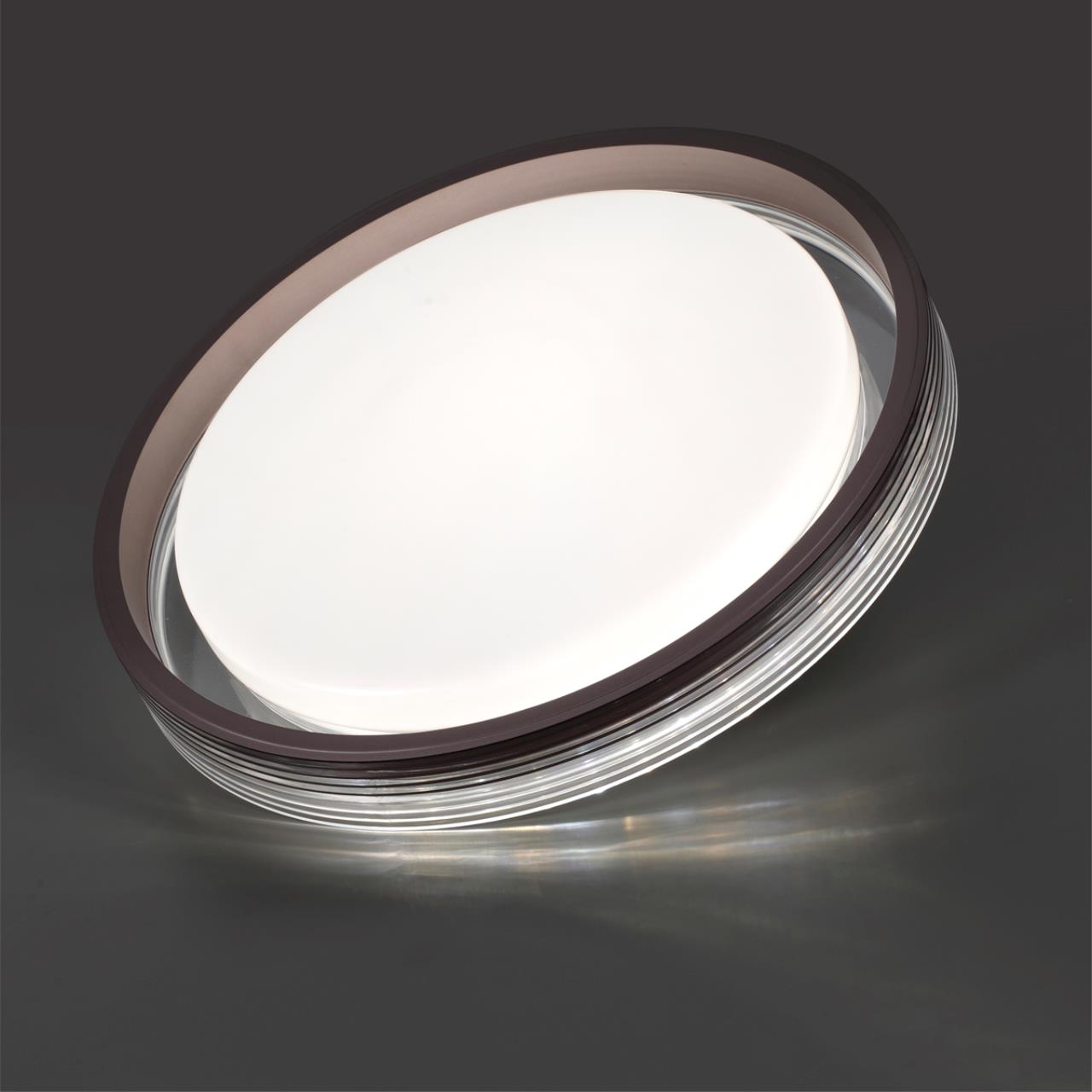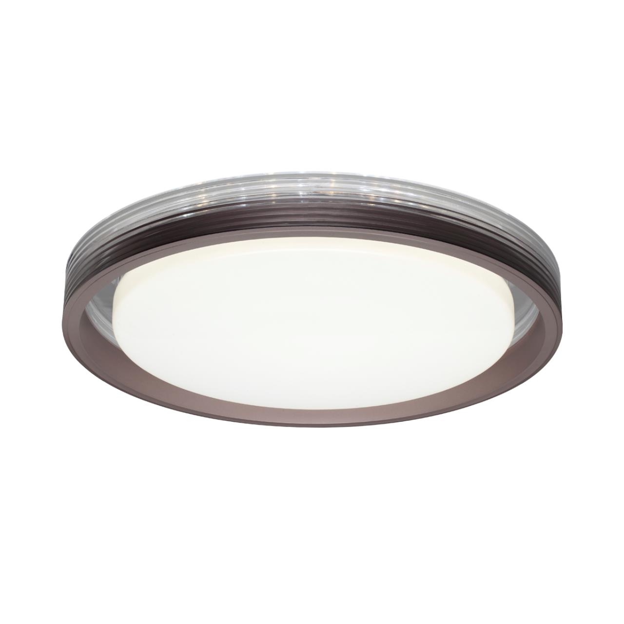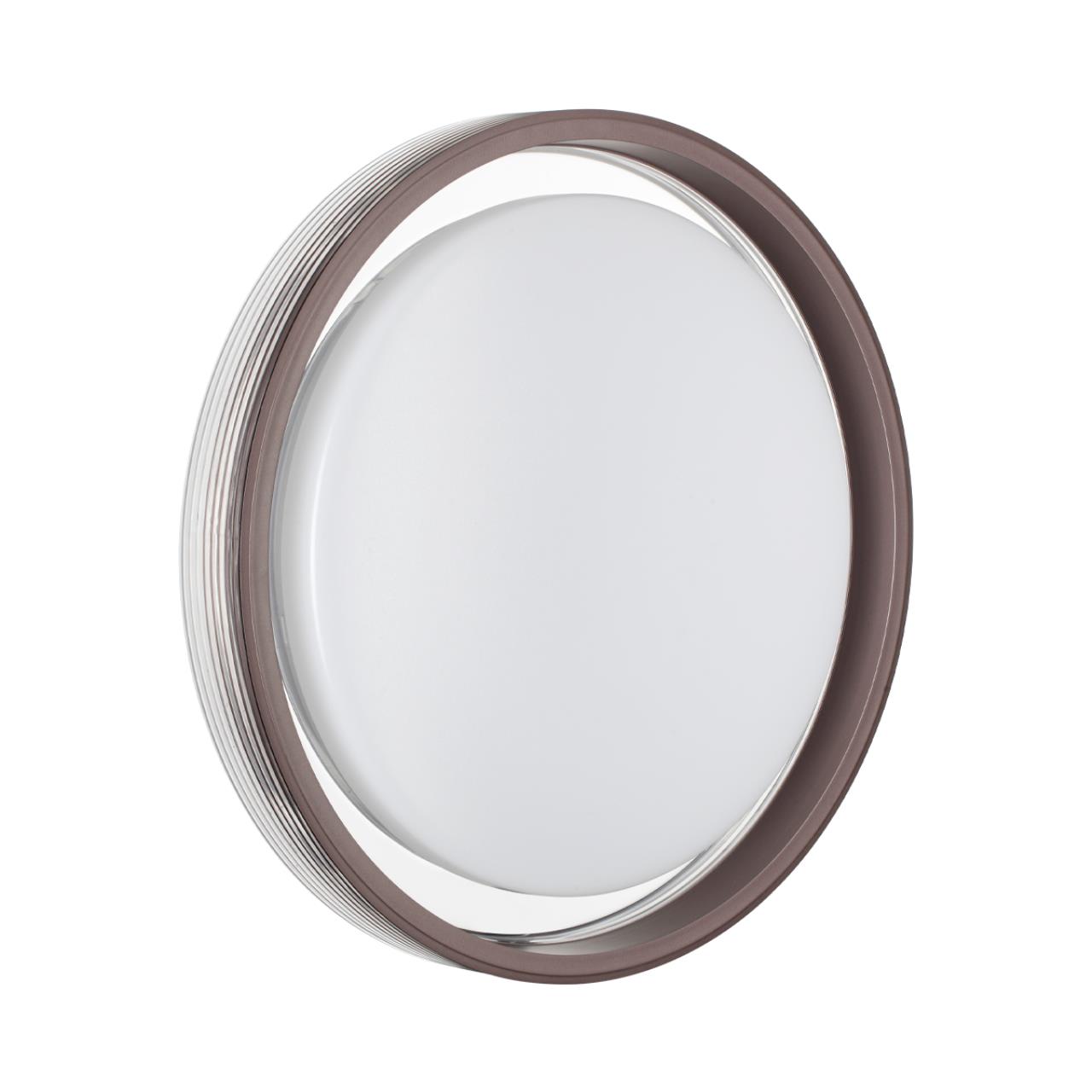 Светильник 7698/DL линии MEDEN состоит из металлического основания (базы) и пластикового рассеивателя. Материал рассеивателя — высококачественный пластик марки PMMA 2.0 белого цвета с матовой поверхностью, без текстуры. Пластик обеспечивает светильнику равномерное рассеивание и хорошее светопропускание. Форма плафона: круглая, декорирована многослойным ободом из пластика цвета кофе у края плафона и прозрачного цвета у его основания. Степень защиты IP43 позволяет использовать светильник в определенных зонах влажных помещений. В комплект входит заменяемый LED-модуль с линзами мощностью 48 Вт, соответствующей лампе накаливания 440 Вт, а также пульт ДУ (с креплением на стену), с помощью которого осуществляется плавное изменение цветовой температуры в диапазоне 3000—6000 К, изменение яркости, переход в режим переключения теплого/белого/холодного/ночного света. Светильник имеет функцию памяти.