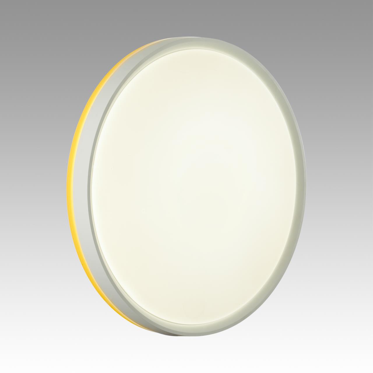 Светильник 7709/DL линии KEZO YELLOW состоит из металлического основания (базы) и пластикового рассеивателя. Материал рассеивателя — высококачественный пластик марки PMMA 2.0 белого цвета с матовой поверхностью без текстуры. Пластик обеспечивает светильнику равномерное рассеивание и хорошее светопропускание. Форма плафона: круглая, декорирована белым ободом со светопропускающей вставкой желтого цвета у его основания. Степень защиты IP43 позволяет использовать светильник в определенных зонах влажных помещений. В комплект входит заменяемый LED-модуль с линзами мощностью 48 Вт, соответствующей лампе накаливания 460 Вт. Источник света имеет комфортную цветовую температуру 4000 К (белый свет).