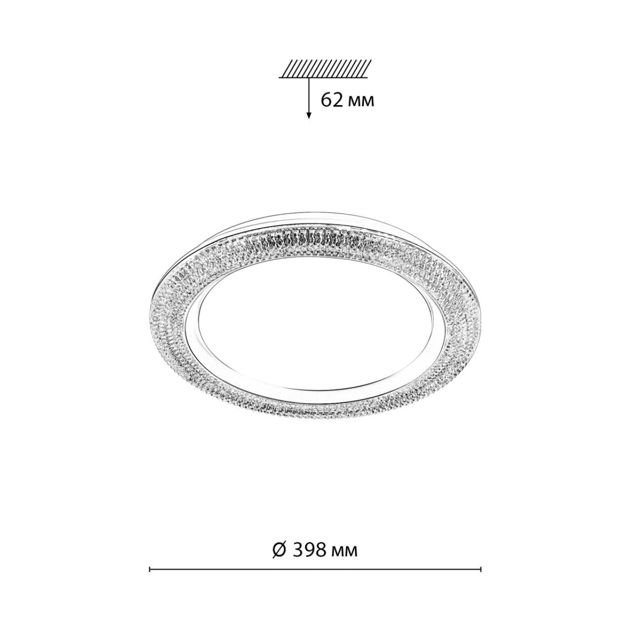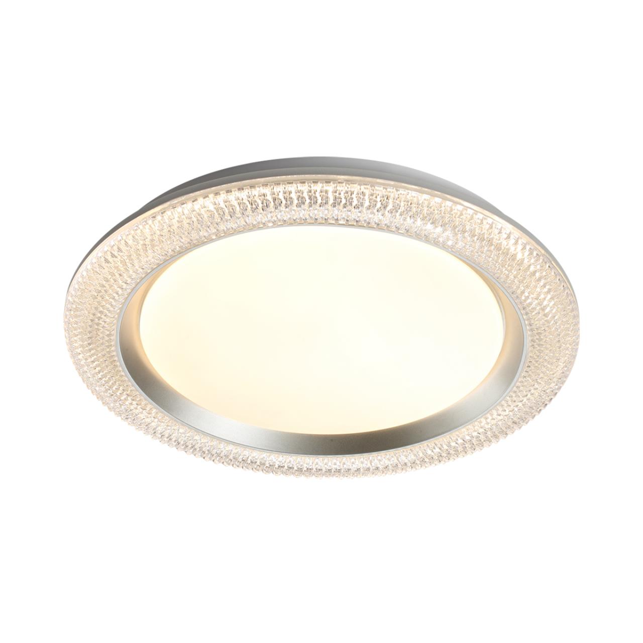 Светильник 7782/DL линии VENDY состоит из металлического основания (базы) и пластикового рассеивателя. Материал рассеивателя — высококачественный пластик марки PMMA 2.0 белого цвета с матовой поверхностью, обеспечивающий светильнику равномерное рассеивание и хорошее светопропускание.Форма плафона круглая, декорирована прозрачным акриловым ободом под хрусталь и кантом серебристого цвета. Степень защиты IP43 позволяет использовать светильник в определенных зонах влажных помещений. В комплект входит заменяемый LED-модуль с линзами мощностью 48 Вт, соответствующей лампе накаливания 440 Вт, а также пульт ДУ, с помощью которого осуществляется плавное изменение цветовой температуры в диапазоне 3000—6000 К, изменение яркости, переход в режим переключения теплого/белого/холодного/ночного света. Светильник имеет функцию памяти.