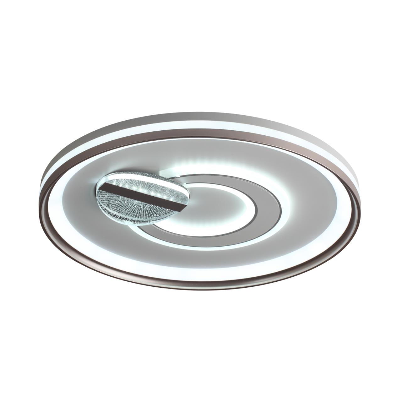 Светильники GEMINI имеют несколько контуров освещения, которые создают красивый декоративный эффект. В центре находится декоративный объемный элемент в виде круга из акрила с глиттером внутри, который добавляет светильнику декоративной привлекательности. Светильник оснащен пультом ДУ.