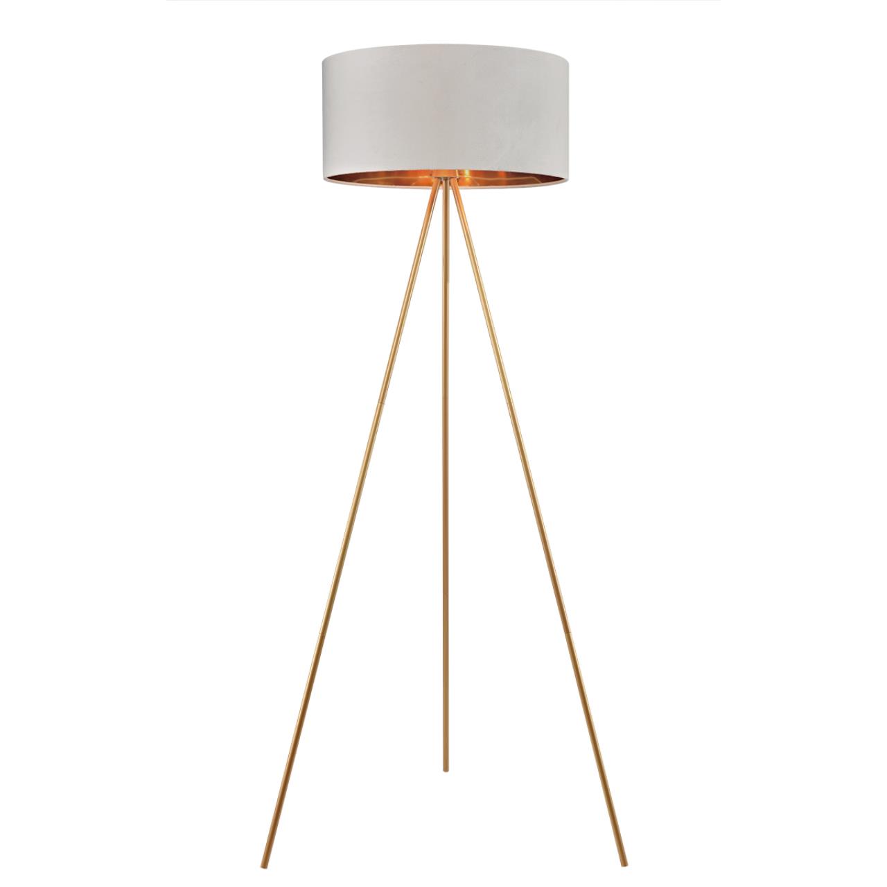 Абажуры линии TAPIOKA выполнены из бархатной ткани на акриловой фольгированной подложке. Золотая внутренняя часть плафона добавляет мягкости освещению и при этом делает торшеры более торжественными и броскими. Стойка основания в виде металлической треноги выкрашена в золотистый цвет. Такая конструкция стойки обеспечивает торшерам устойчивость.