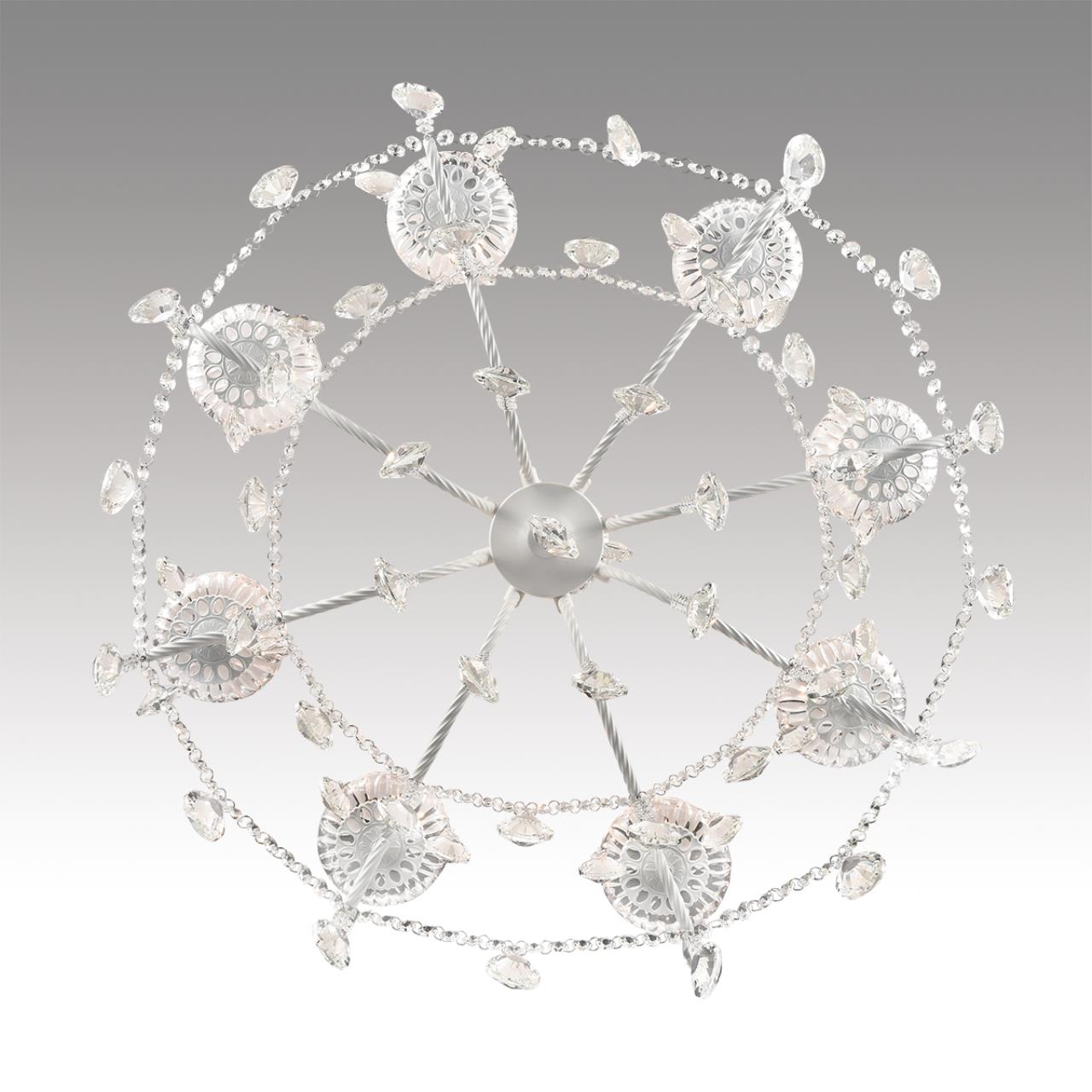Линия светильников SNOW — это сочетание классики и элегантности. Эта коллекция сразу приковывает взгляд благодаря сиянию, которое создают хрустальные подвески в виде капель. Цепочки из хрустальных элементов меньшего размера соединяют между собой рожки, гармонично дополняя композицию. Витиеватые изгибы рожков делают светильники изящными и легкими, превращая их в центральный элемент декора. Красота хрустальных деталей подчеркивается белым цветом металлической арматуры. Такое сочетание полностью отражает название коллекции. Благодаря центральному декоративному элементу создается визуальный объем, а хрустальные розетки добавляют светильникам дополнительный блеск. Линия SNOW украсит интерьер обеденной зоны, гостиной или спальни в классических стилях.
