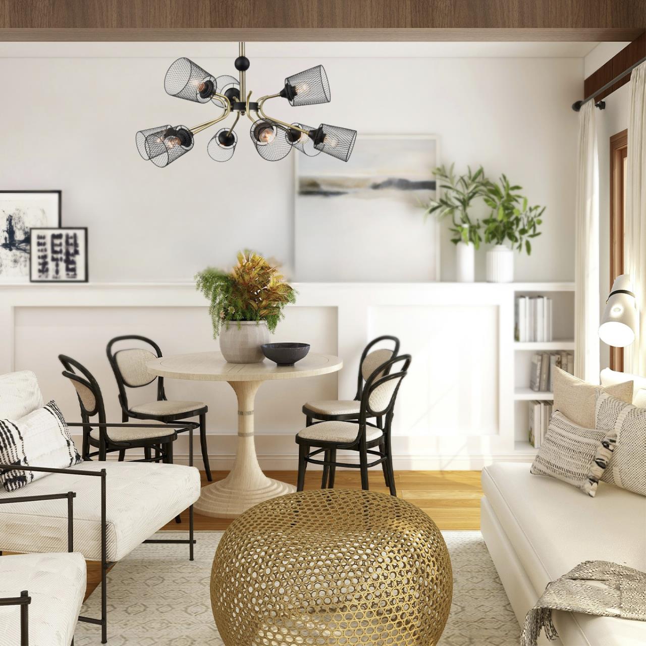 Линия светильников ABRIS воплотила в себе брутальность черного металла и теплоту оттенков античной бронзы. Такое сочетание создает эффектный контраст при минималистичном дизайне. Плафоны изготовлены из черной металлической сетки, что подчеркивает принадлежность этой модели к стилю лофт. Благодаря рожкам, расположенных на разной высоте, светильник смотрится нестандартно и атмосферно. Особенно удачно модель будет смотреться в помещениях с высокими потолками, где станет центральным акцентом интерьера.