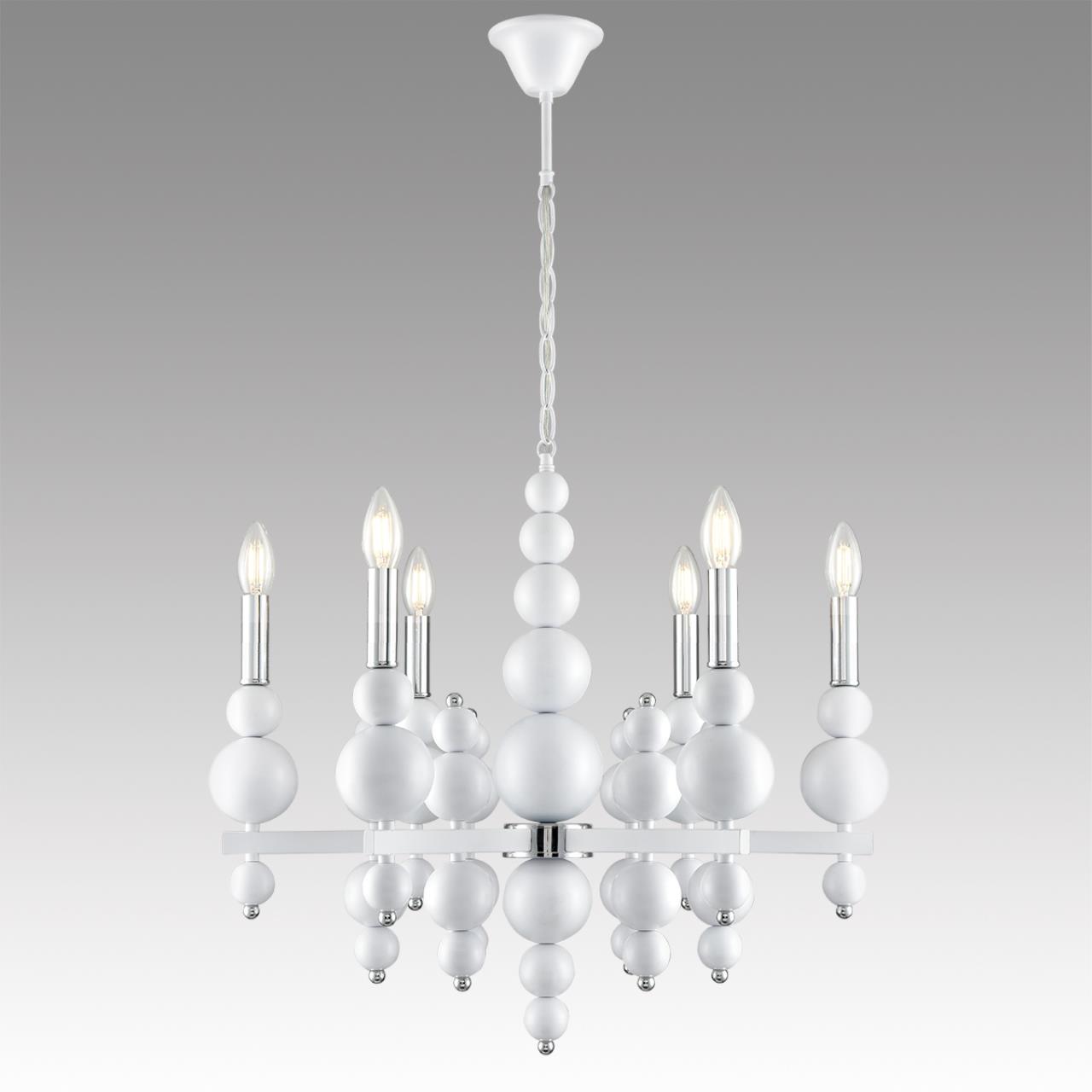 Светильники линии NANA имеют уникальный запоминающийся дизайн. Арматура светильников состоит из декоративных белых сферических элементов разного диаметра. А хромированные элементы в модели добавляют ей изысканности и очарования. В коллекции NANA имеются люстры на 6 и 8 ламп, а также бра на 1 лампу.