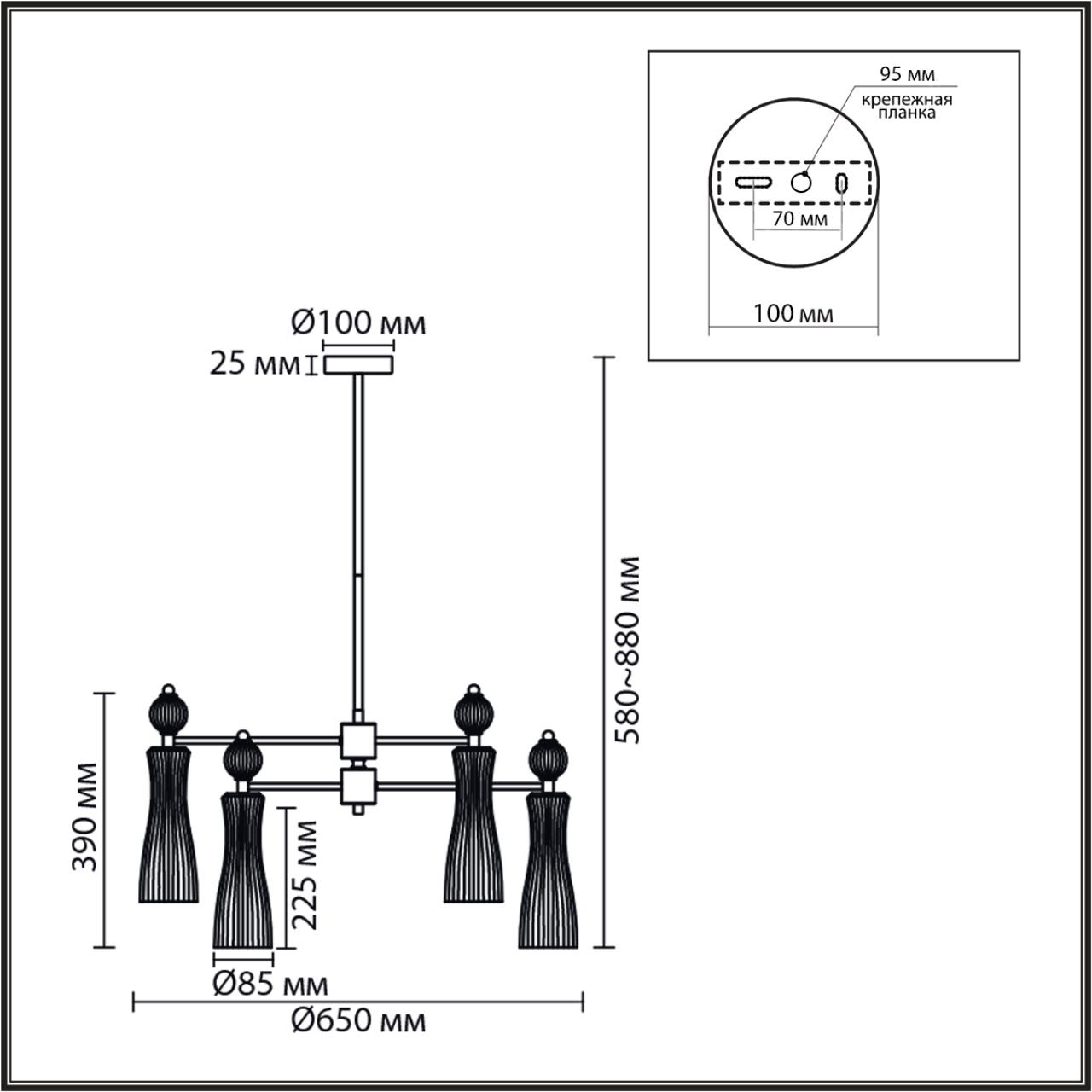 Светильник Высота без цепи, мм