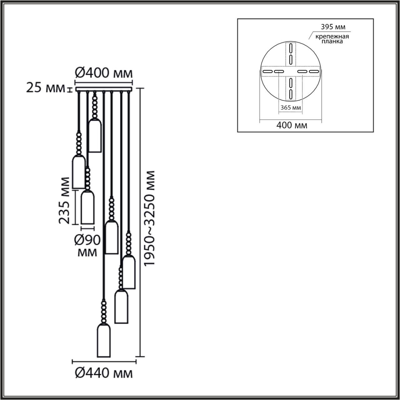 Светильник Высота без цепи, мм