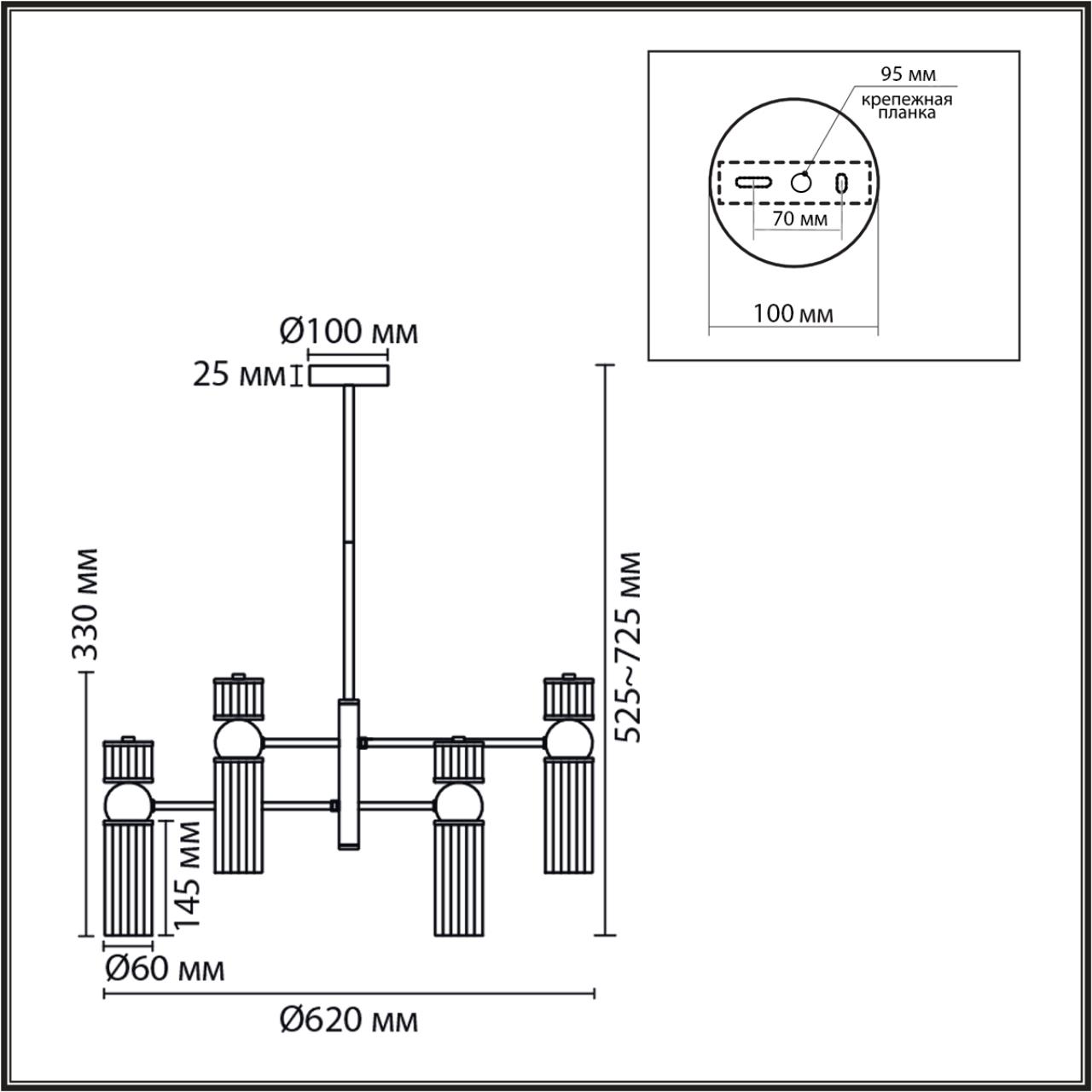Светильник Высота без цепи, мм