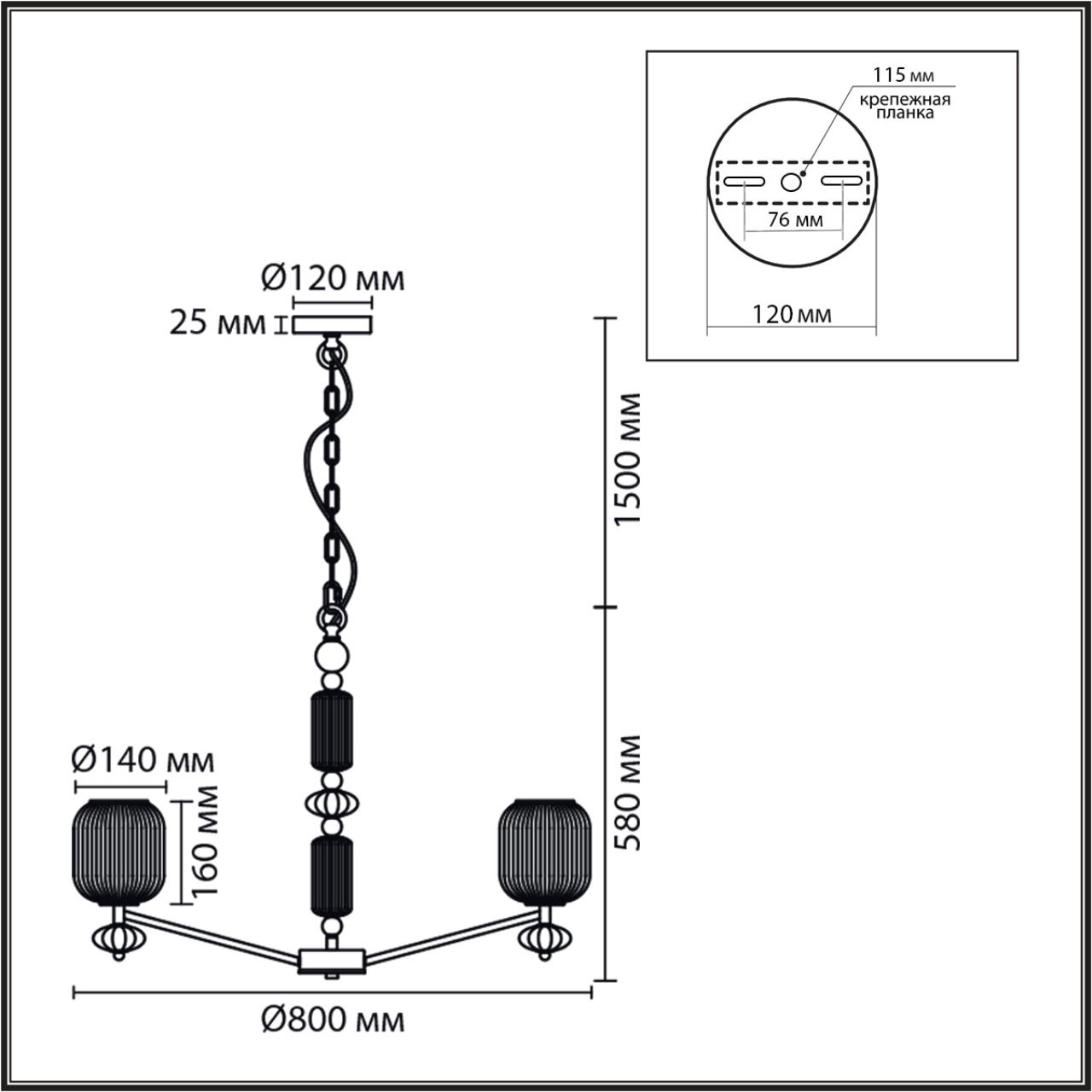 Светильник Высота без цепи, мм