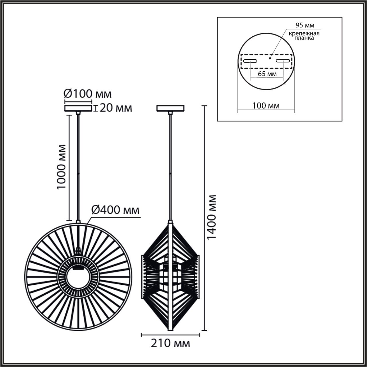 Светильник Высота без цепи, мм