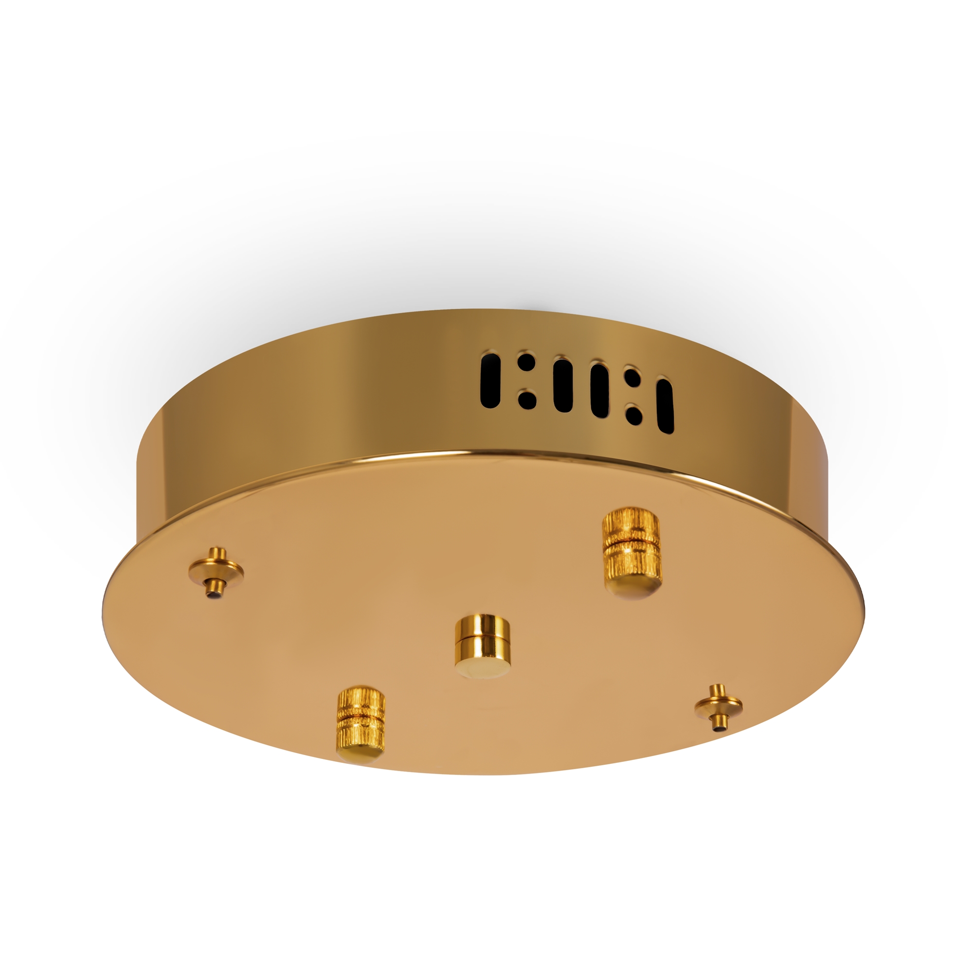 Металлическая арматура в цвете латунь и хром. Хрустальные декоративные кольца с геометричными гранями. LED-источник света. Регулировка цветовой температуры (3000-4000-5000K) и яркости 4G-dimming при помощи пульта (в комплекте).