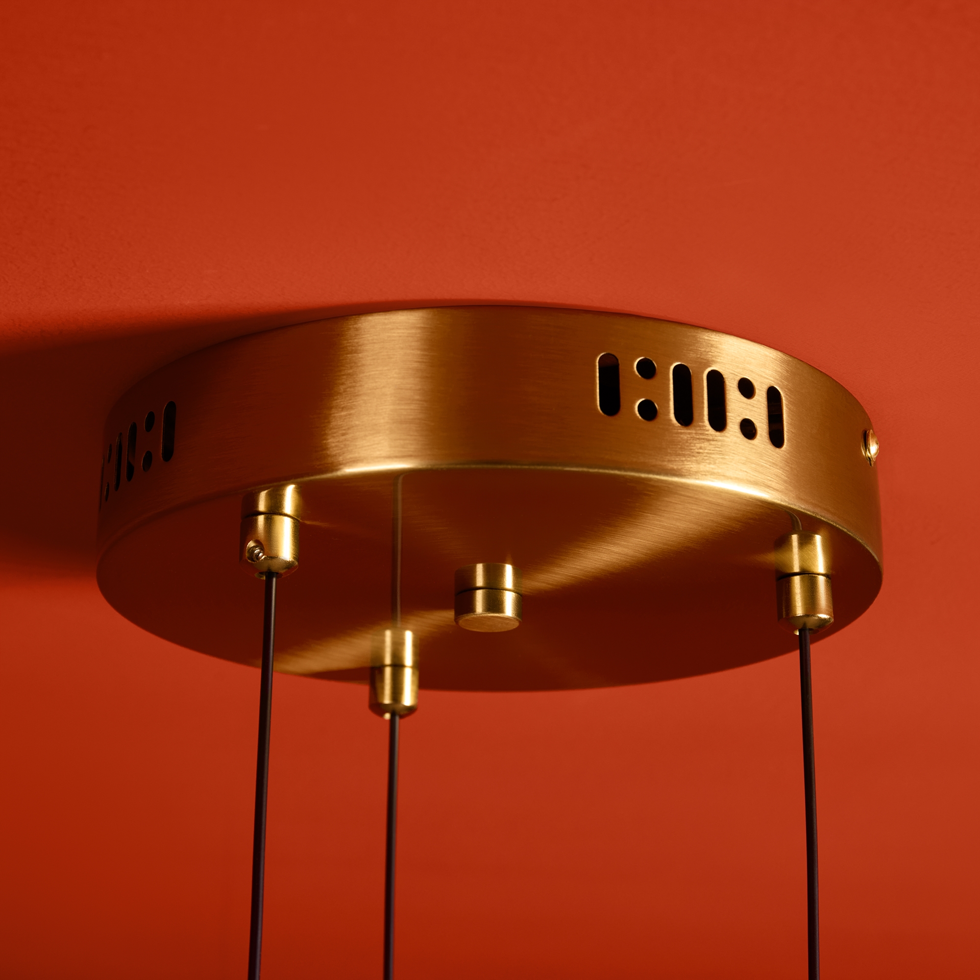 Арматура — металл. Плафоны из алебастра/камня и матового белого стекла. Версии с лампами G9 (не в комплекте) и с LED источником света. Высота регулируется.