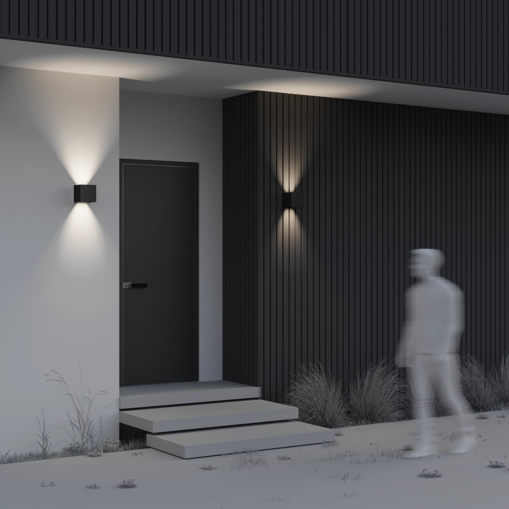 Настенные уличные светильники для архитектурной художественной подсветки. Благодаря подвижным шторкам можно регулировать угол светового потока и создавать индивидуальную световую графику. Корпус овальной и прямоугольной формы изготовлен из устойчивого к коррозии алюминия и окрашен порошковой краской. В качестве источника света использован LED-модуль. Модели представлены в черном, сером и белом цвете.