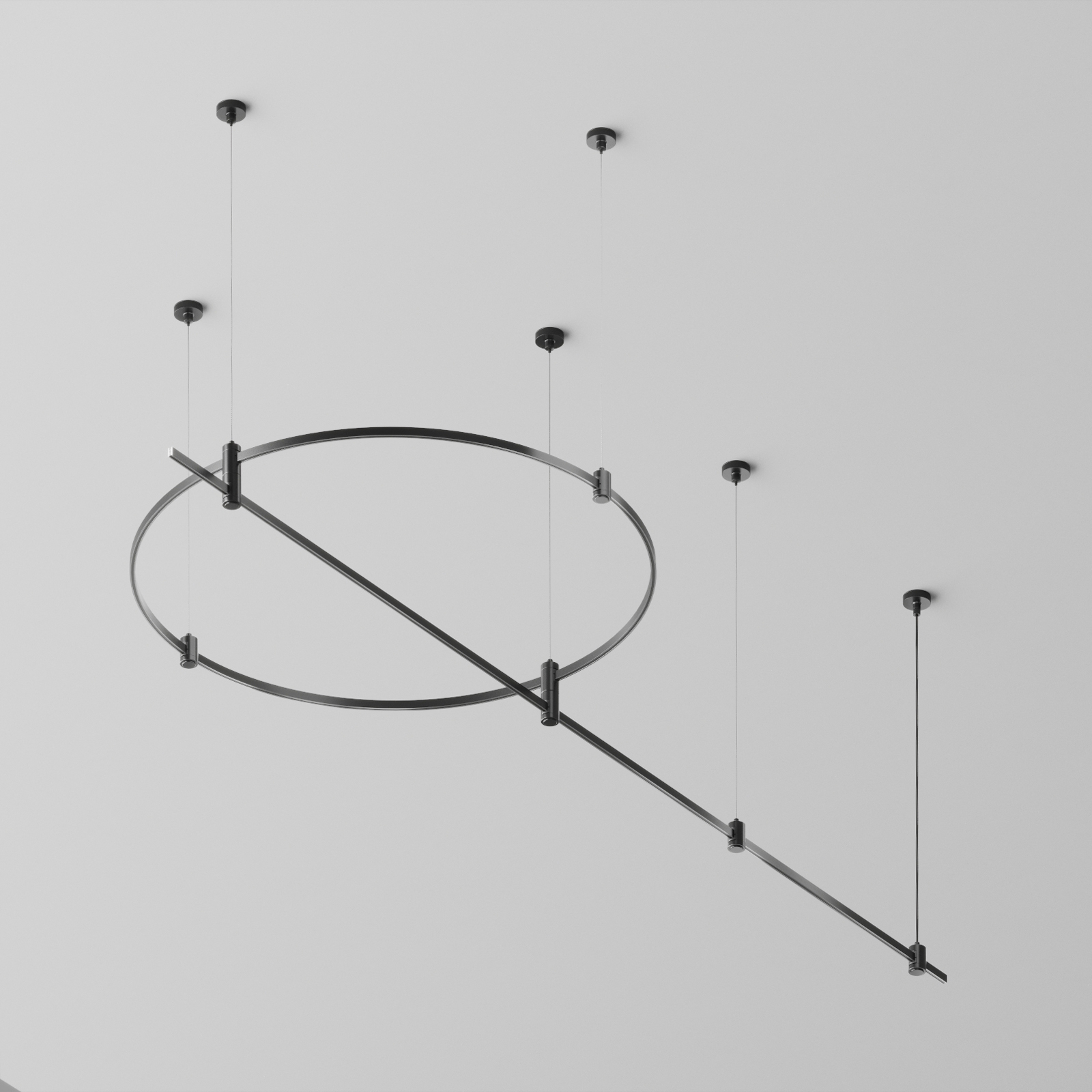 Готовая конструкция круглая + прямая двухуровневая на тросовых подвесах Hang без светильников и блока питания, черный