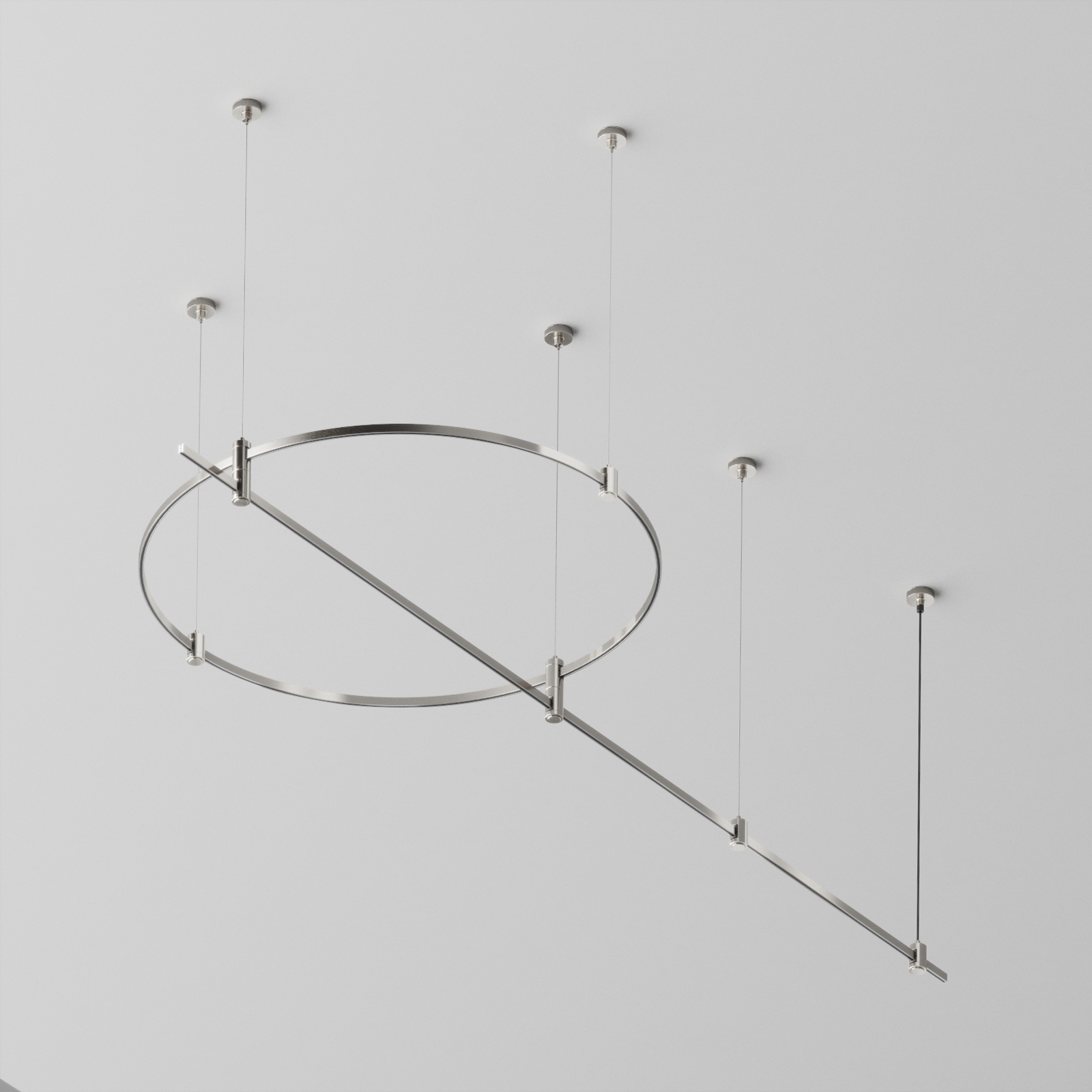 Готовая конструкция круглая + прямая двухуровневая на тросовых подвесах Hang без светильников и блока питания, платина