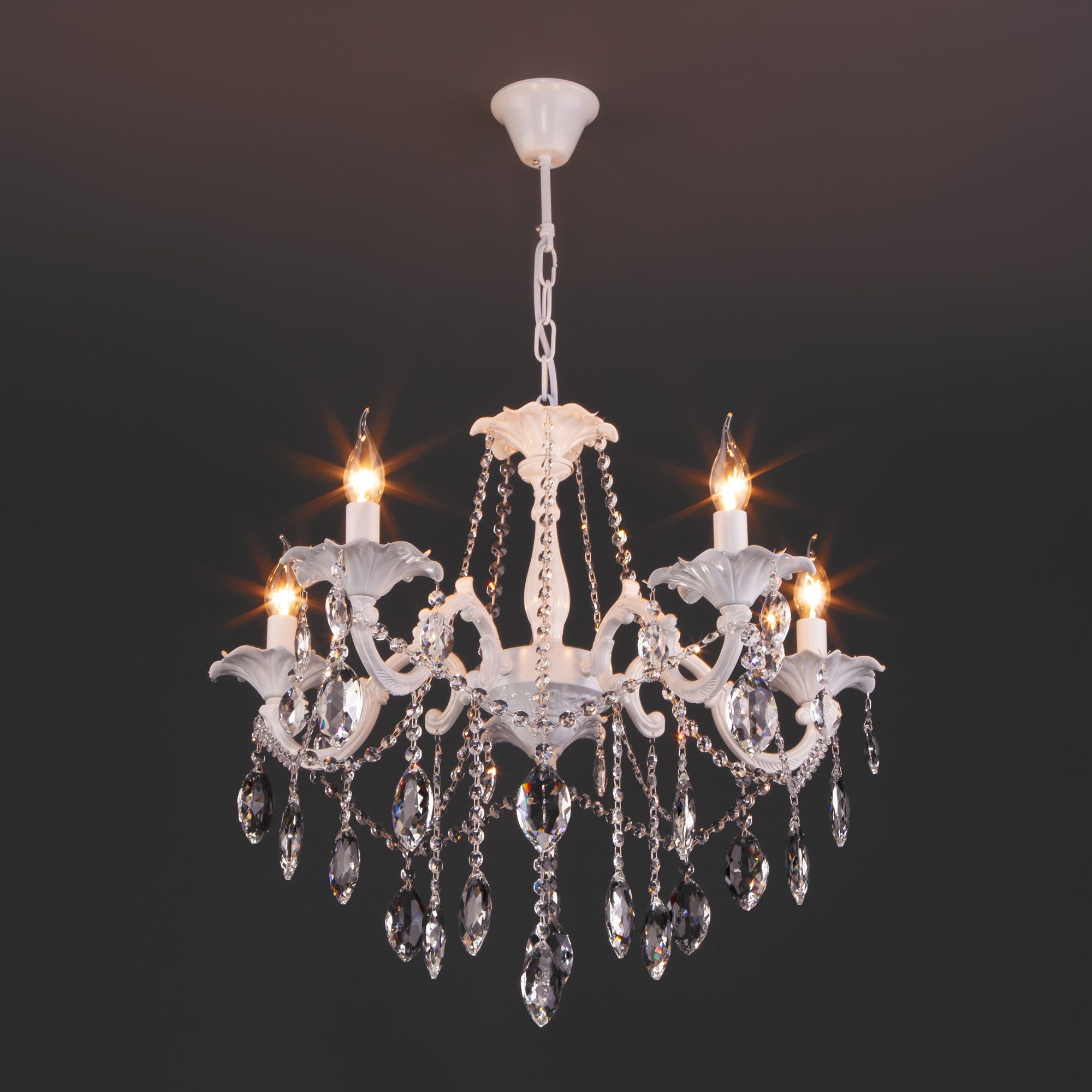 Классическая хрустальная люстра на 5 рожков в цвете белый/прозрачный хрусталь Strotskis преобразит потолочное пространство и создаст в вашем помещении комфортное полноценное освещение на площади 23 м кв.
