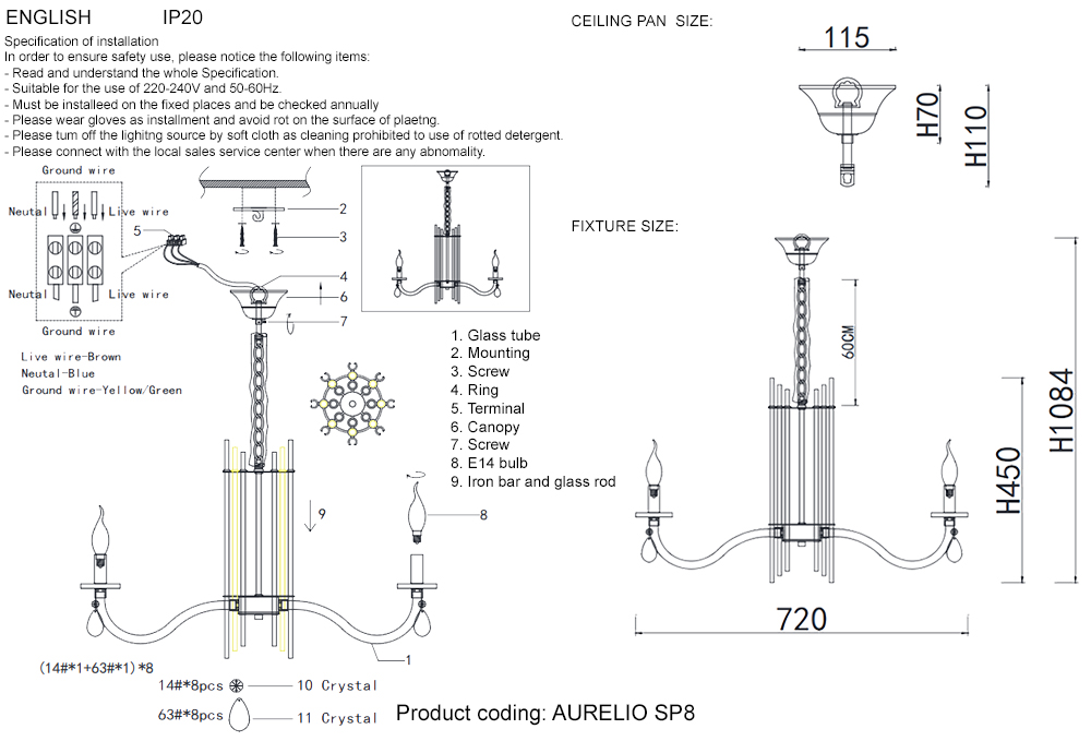 AURELIO SP8 GOLD+CHROME/TRANSPARENT