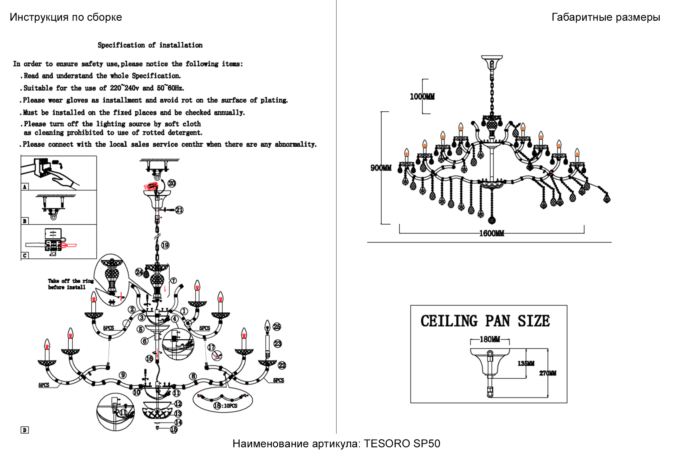 Высота с цепью/тросом, мм
