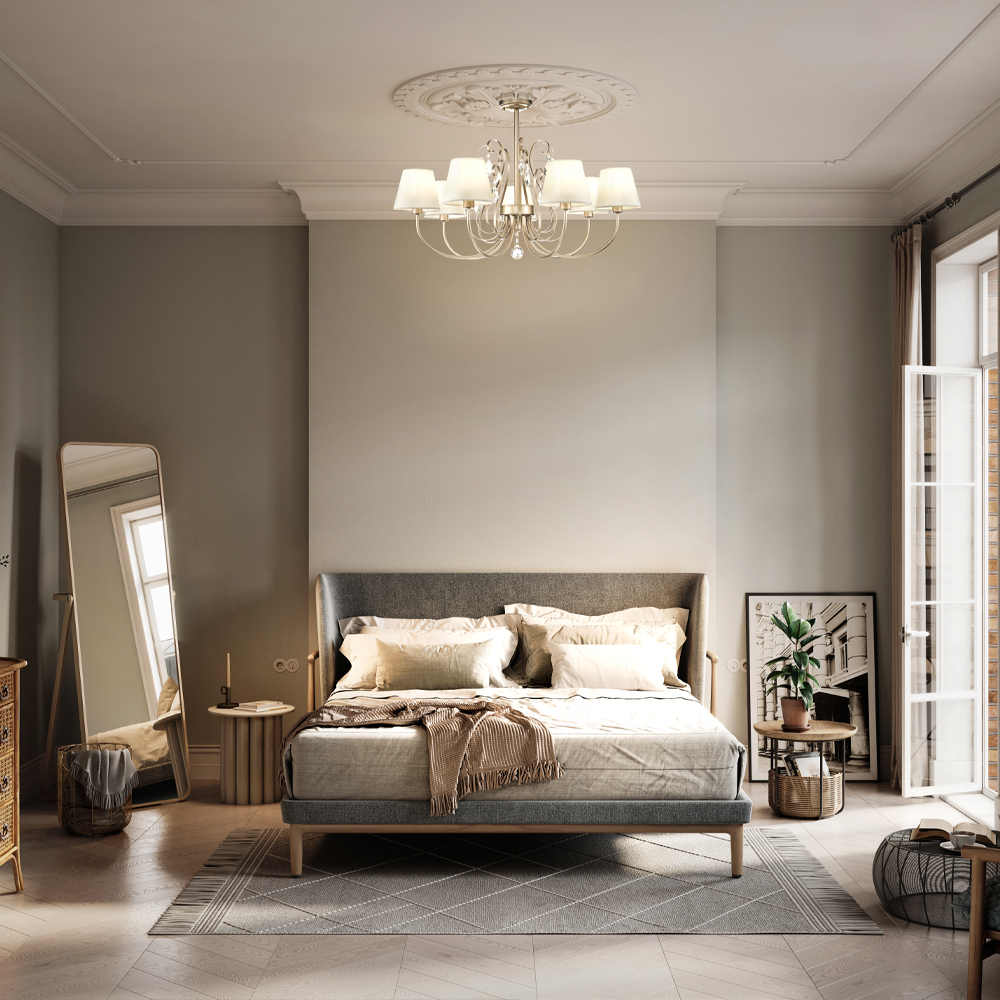 Серия Vanda выполнена в классическом стиле. Благодаря своему строгому и элегантному дизайну светильники могут дополнить интерьер гостиной, спальни и даже гардеробной комнаты. Металлическая арматура цвета матового золота, абажуры сделаны из белой ткани. Светильники украшены декоративными подвесками.