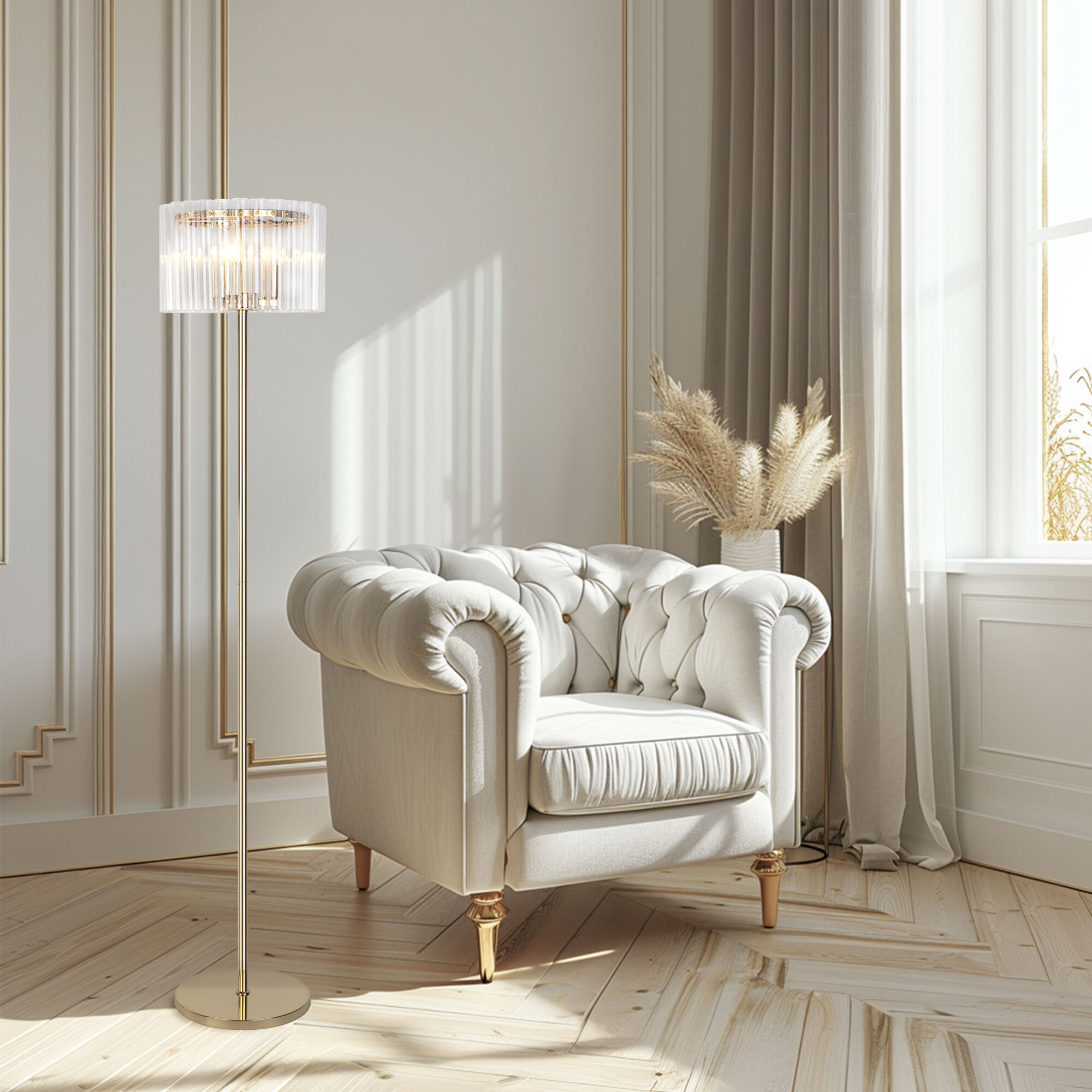 Благодаря стеклянному абажуру напольный светильник создает мягкое рассеянное свечение, подходящее для комфортного чтения книг в вечернее время. Прочный металлический корпус светильника устойчив к механическим воздействиям, а защитное покрытие обеспечивает надежную электроизоляцию и презентабельный внешний вид.