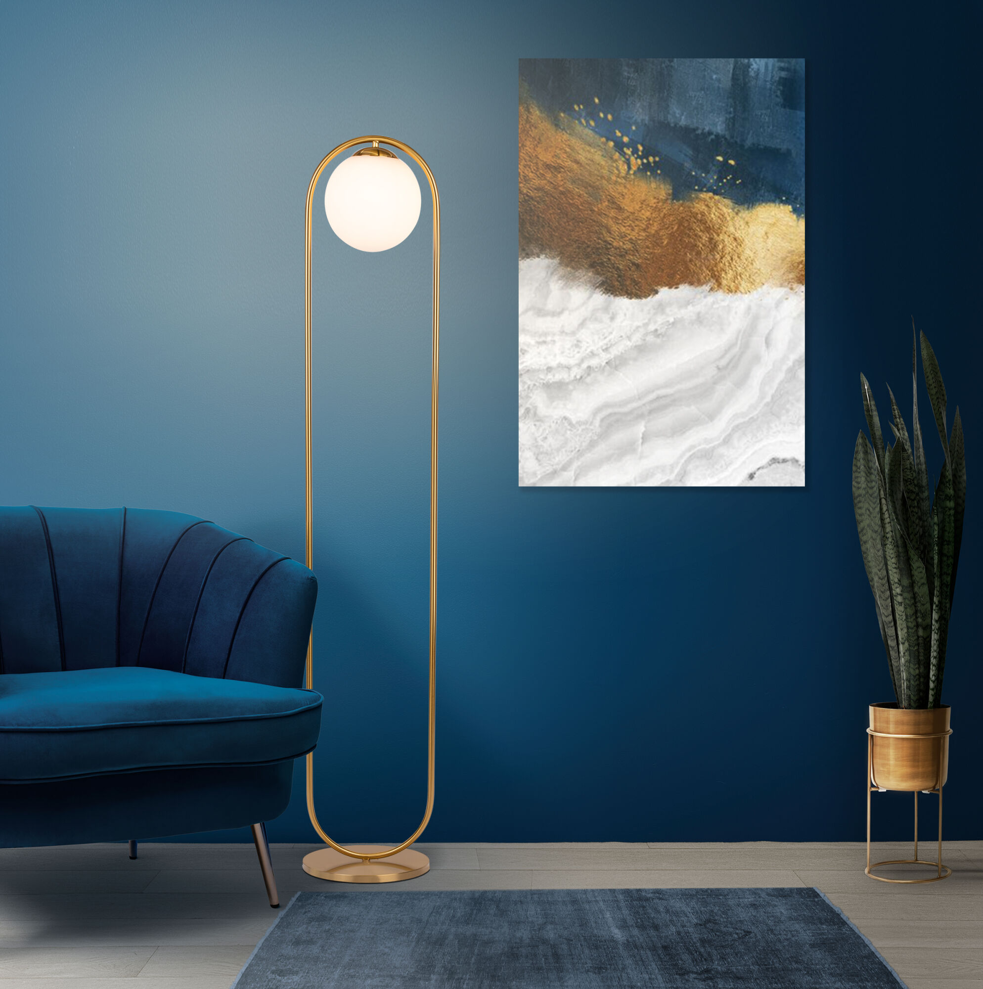 Благодаря золотому стеклянному плафону напольный светильник создает мягкое рассеянное свечение, подходящее для комфортного чтения книг в вечернее время. Прочный металлический корпус светильника устойчив к механическим воздействиям, а защитное покрытие обеспечивает надежную электроизоляцию и презентабельный внешний вид.