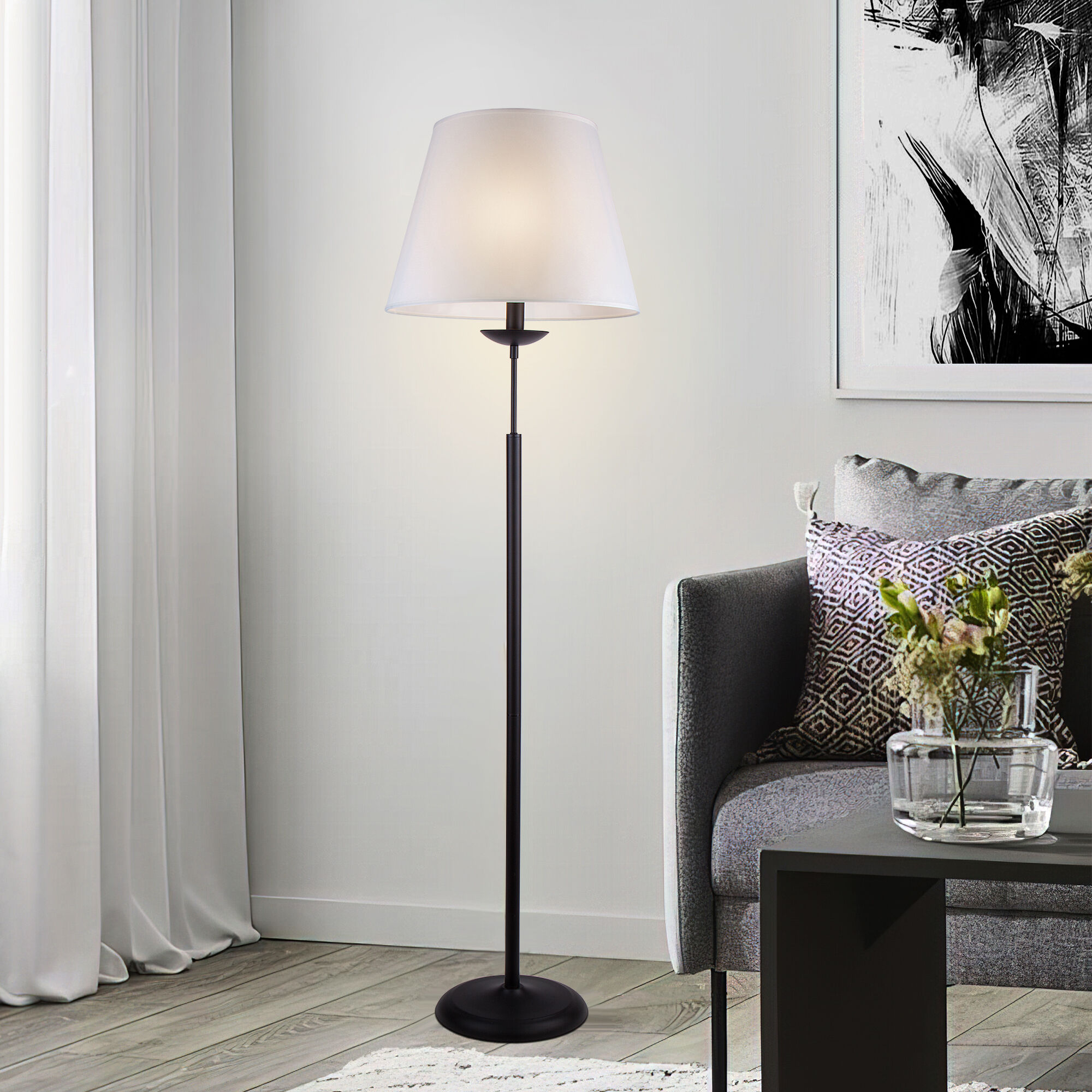 Напольный светильник с абажуром 01008/1 черный-это стильный элемент светового дизайна в современных и классических интерьерах. Эффектный торшер со сменной лампой E14 поможет создать качественное дополнительное освещение на площади 3 м² и станет роскошным украшением вашей спальни или гостиной.