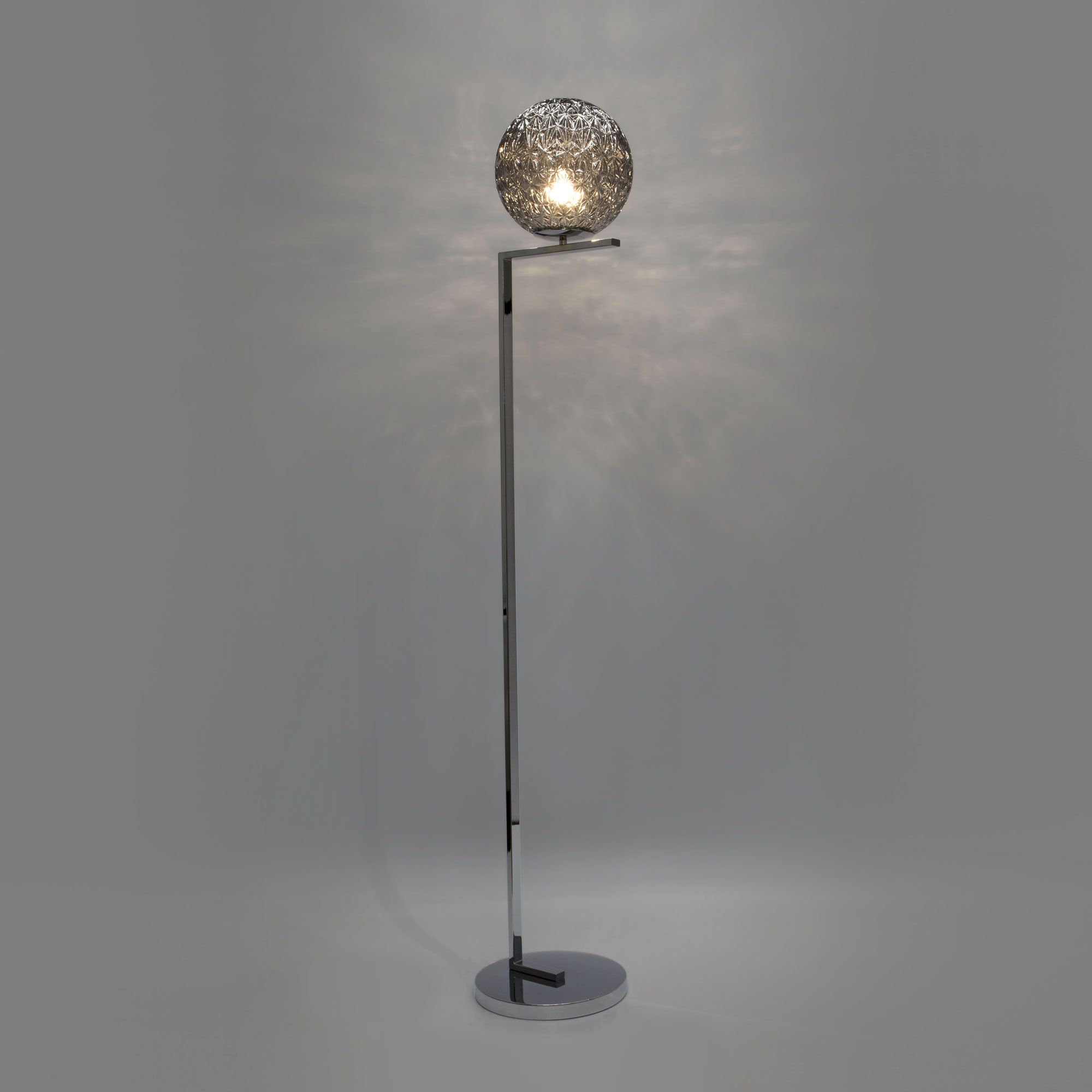 Напольный светильник со стеклянным плафоном/абажуром 01214/1 хром-это стильный элемент светового дизайна в современных и классических интерьерах. Современный напольный светильник со сменной лампой E14 поможет создать качественное дополнительное освещение на площади 3 м² и станет изящным украшением вашей спальни, гостиной.