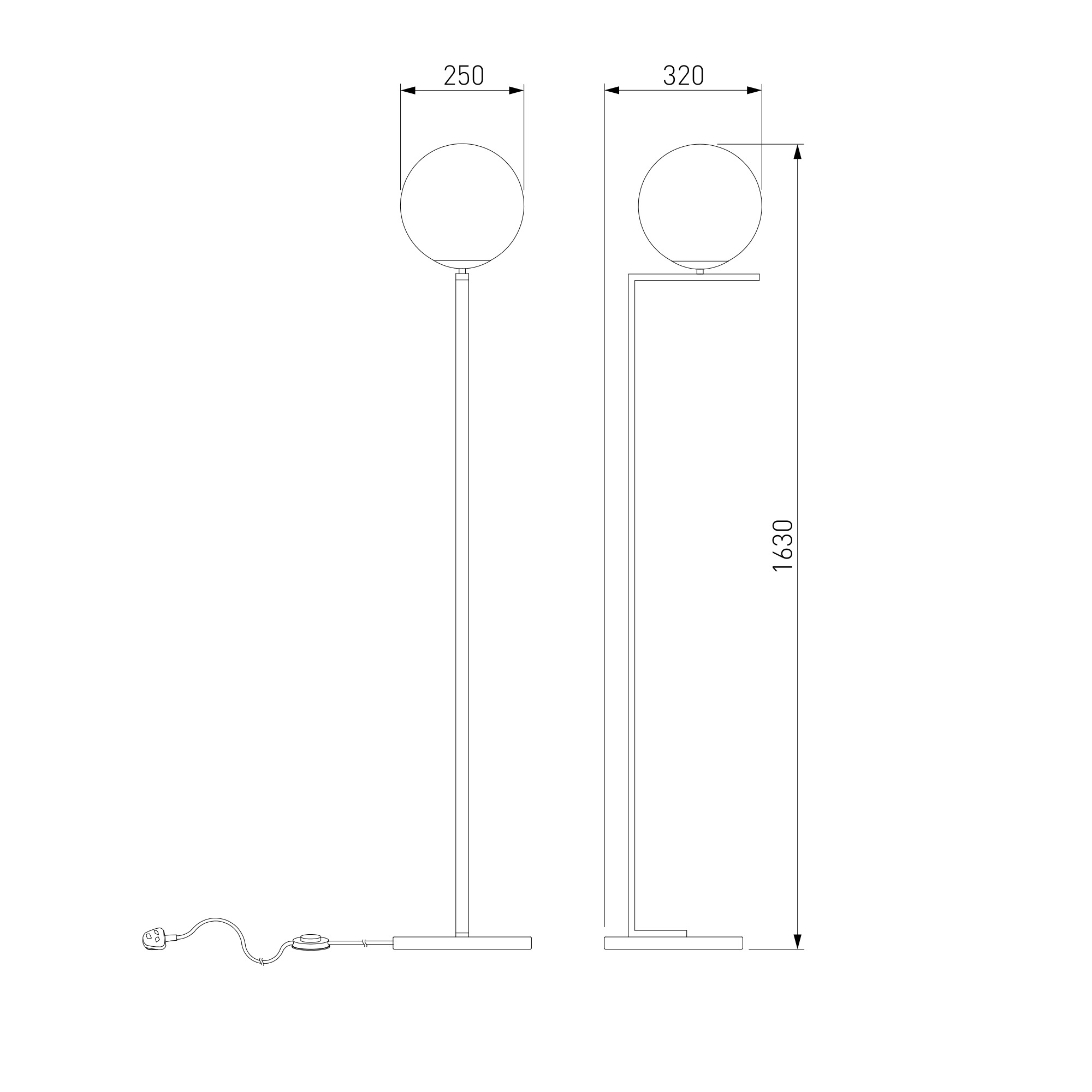 Благодаря дымчатому стеклянному плафону напольный светильник создает мягкое рассеянное свечение. Прочный металлический корпус светильника устойчив к механическим воздействиям, а защитное покрытие обеспечивает надежную электроизоляцию и презентабельный внешний вид.
