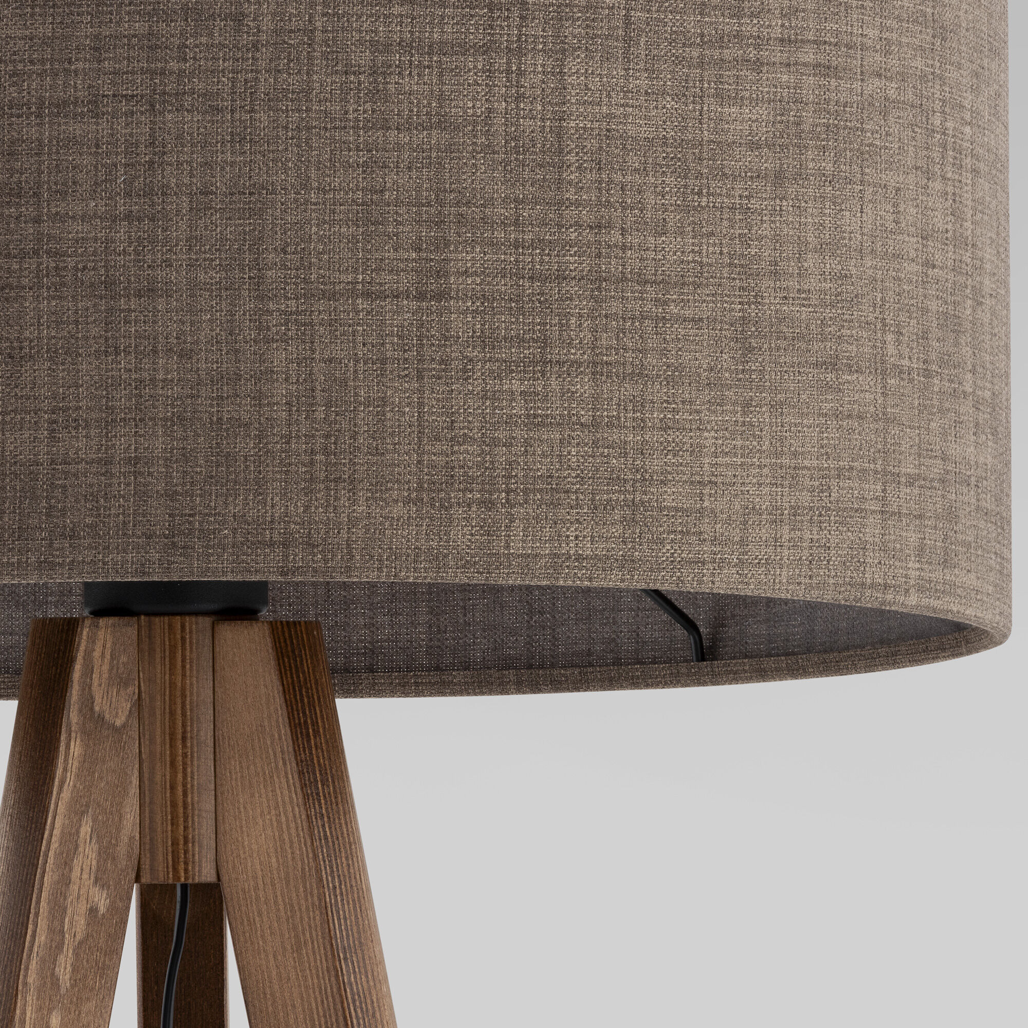 Благодаря коричневому тканевому абажуру напольный светильник создает мягкое рассеянное свечение. Прочный деревянный корпус светильника устойчив к механическим воздействиям, а защитное покрытие обеспечивает надежную электроизоляцию и презентабельный внешний вид.