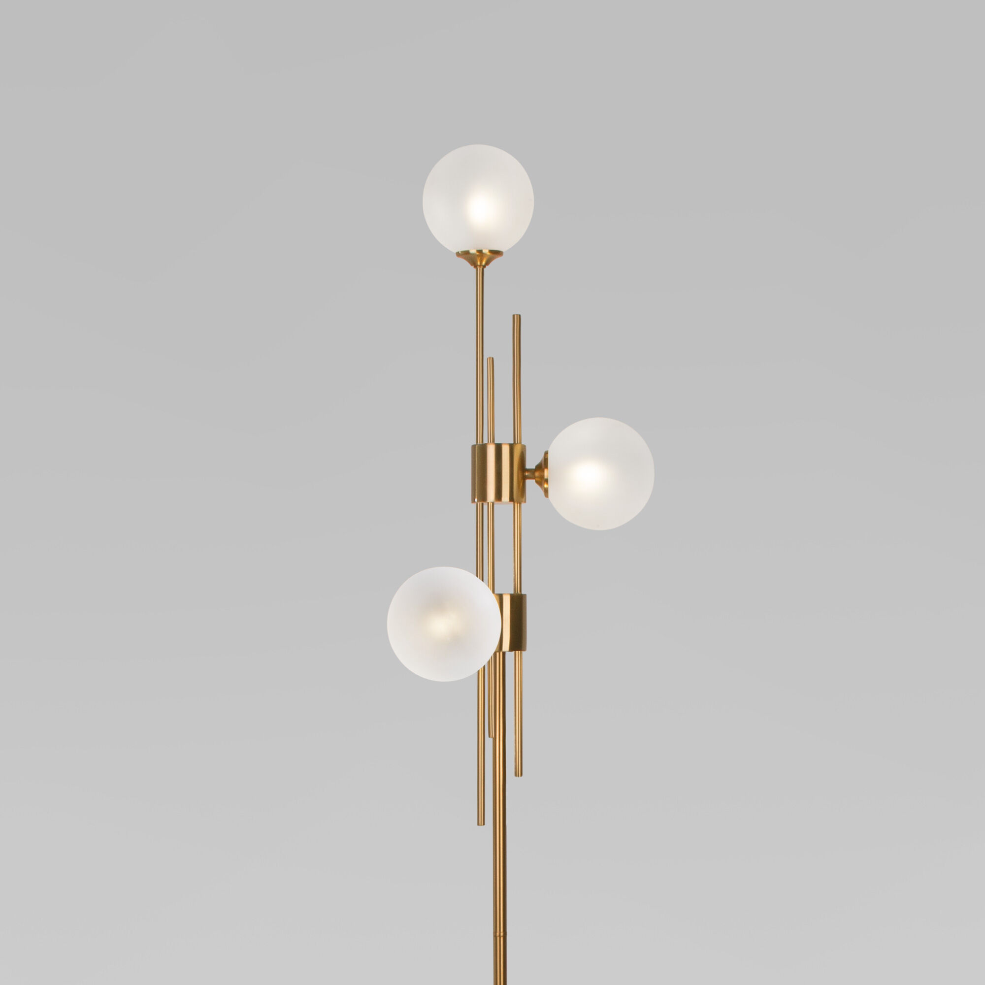 Напольный светильник со стеклянными плафонами 01383/3 латунь - это стильный элемент светового дизайна в современных и классических интерьерах. Эффектный, выразительный, современный торшер со сменными лампами G9 поможет создать качественное дополнительное освещение на площади 4 м² и станет изящным украшением вашей спальни или гостиной.