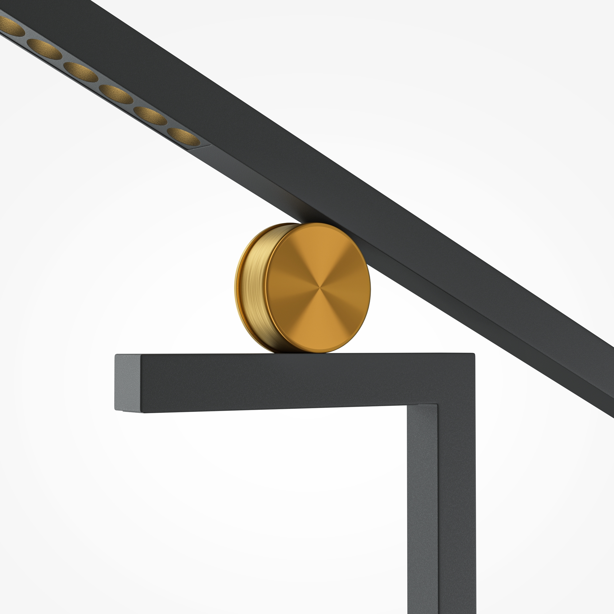 Металлическая арматура черного цвета с декоративными элементами в цвете латуни. Источник света: LED – светодиоды. Значительный световой поток 1200 Лм. Цветовая температура 3000К. Угол рассеивания света 120 градусов. Тип рассеивания — прямой, есть функция диммирования. Поверхность светильника гладкая. Система управления с помощью датчиков, реагирующих на движение руки. Световой элемент поворачивается вверх и вниз на 45 градусов и вправо или влево на 180 градусов. Минималистичный дизайн подойдет для любых актуальных интерьеров.