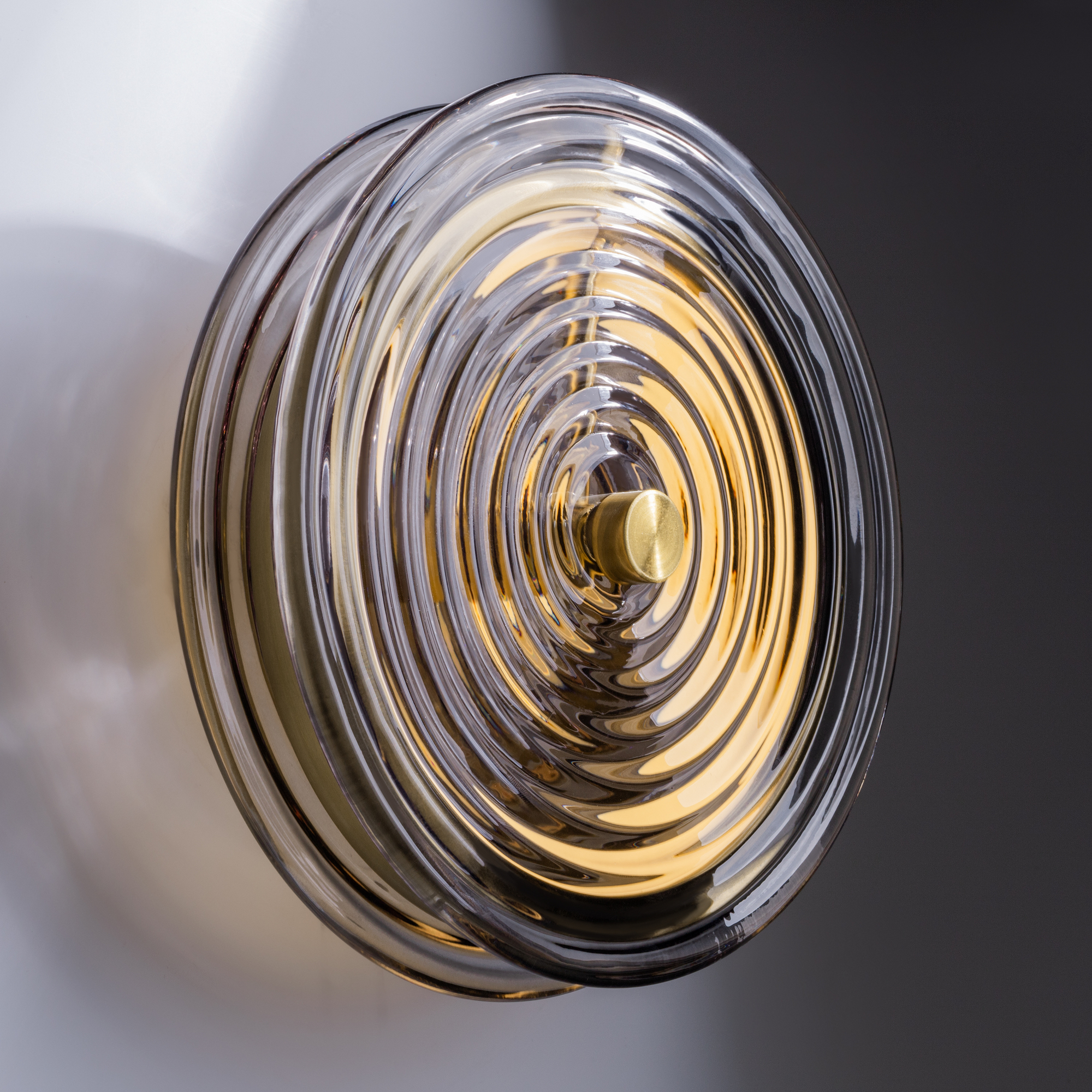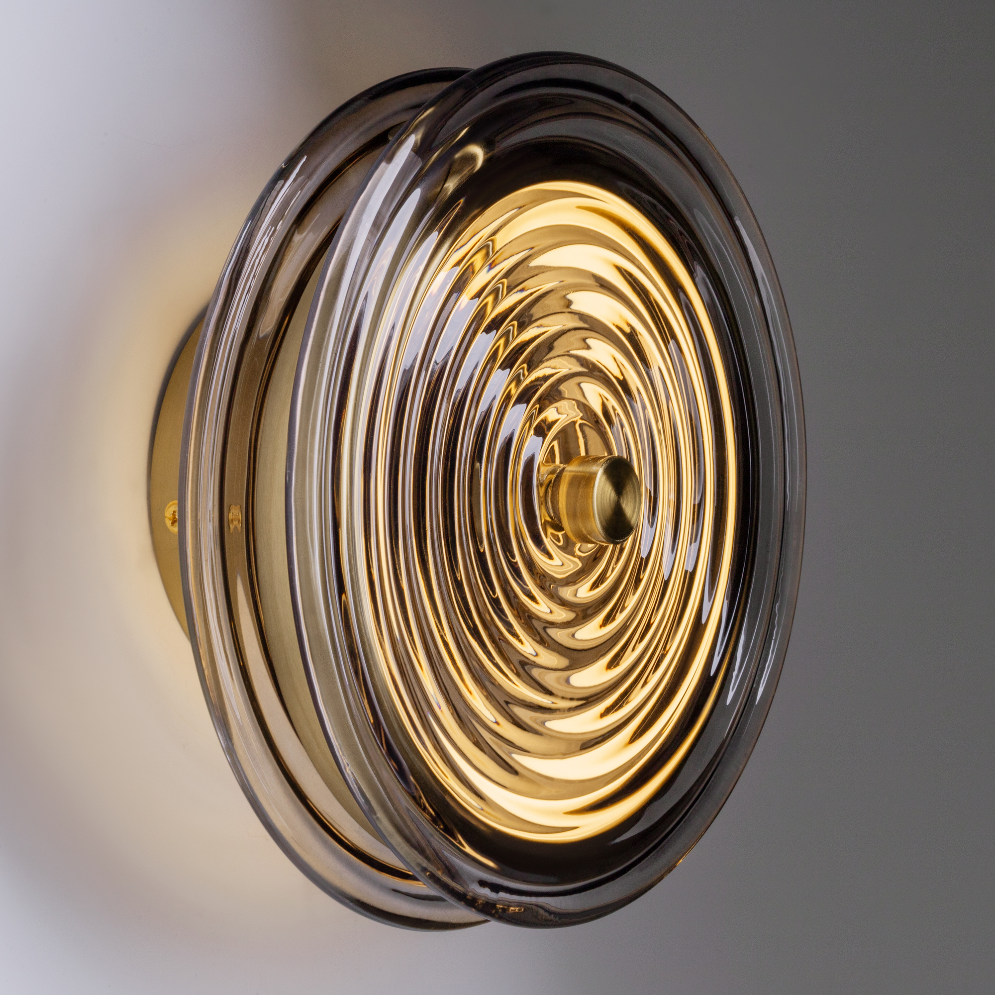 Арматура - металл. Цвет арматуры латунь. Плафоны из стекла в форме леденцов выполнены в четырех цветах: серый, зеленый, прозрачный и желто-оранжевый. Широкий спектр типов светильников: торшеры, настенные бра и подвесы. LED источник света. Цветовая температура 3000К.
