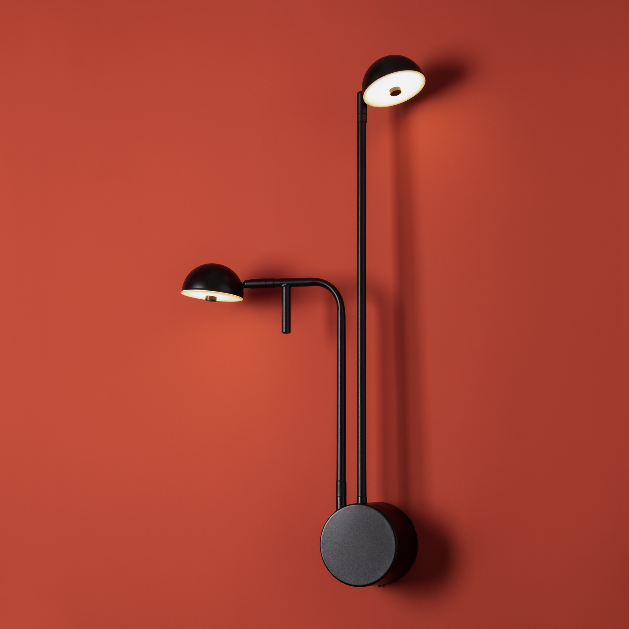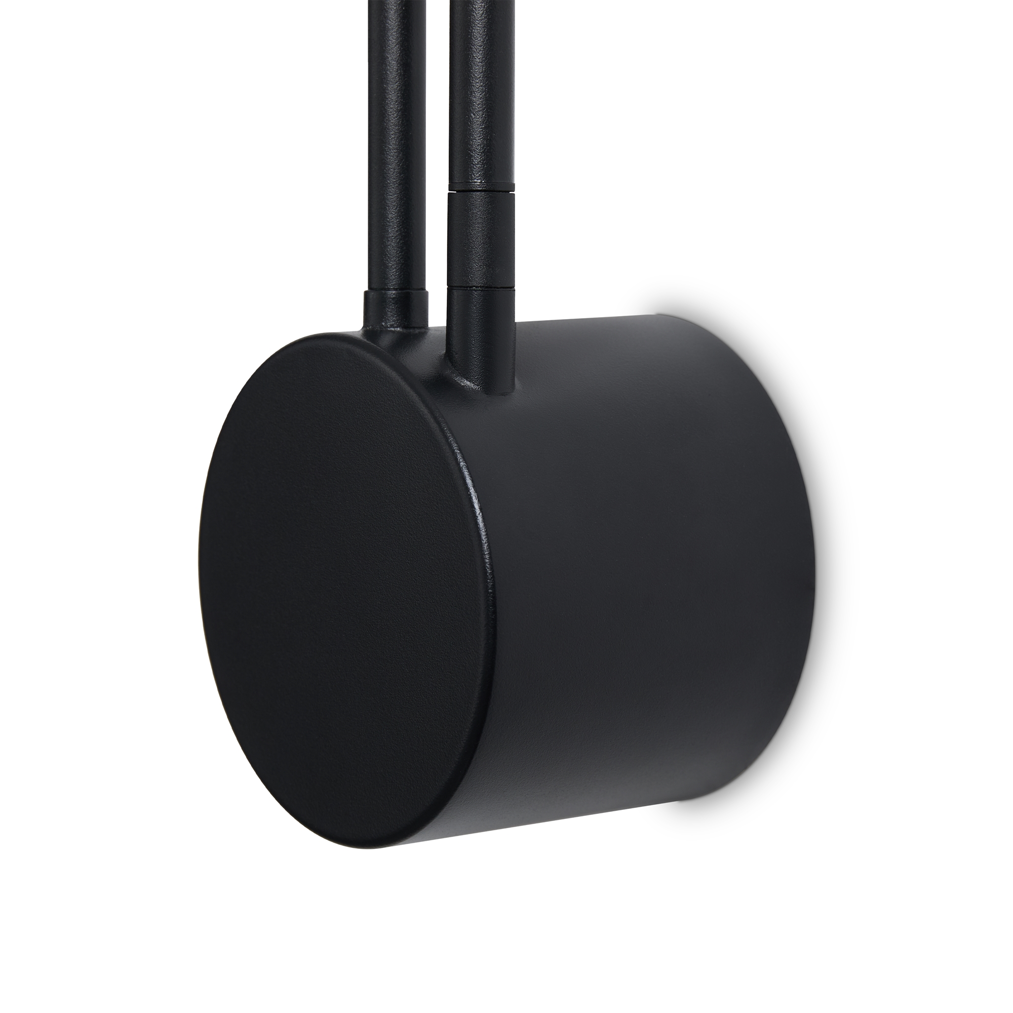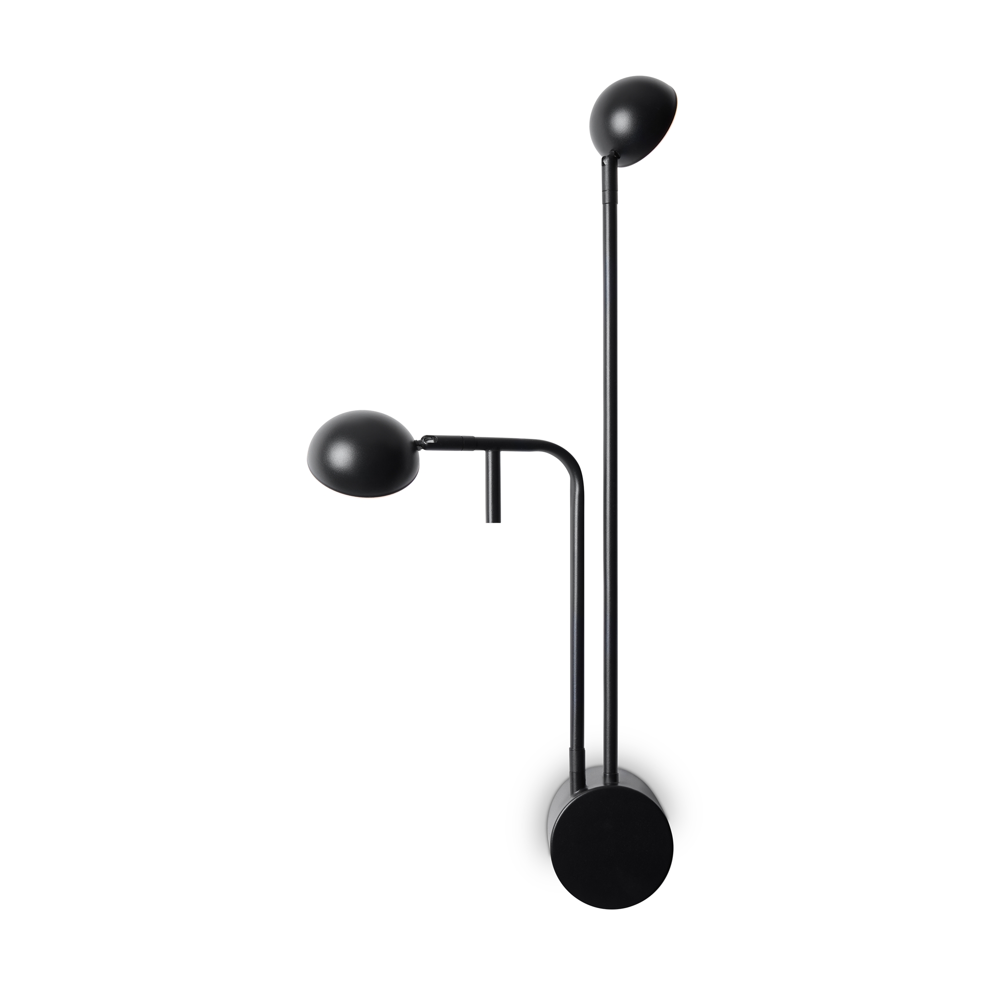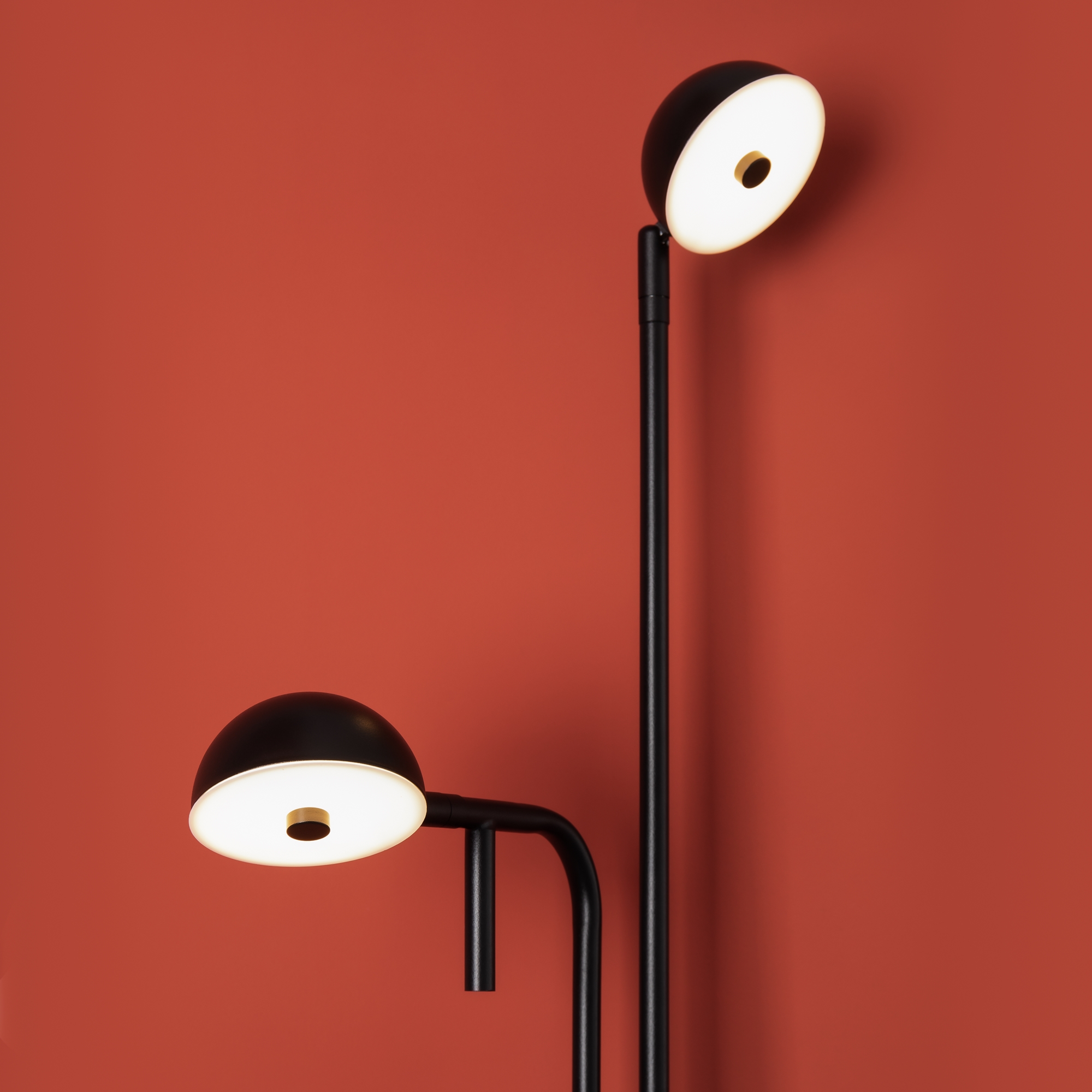 Материал арматуры — металл, цвет — черный. Напольный торшер и настенные светильники оснащены LED-источниками света с цветовой температурой 2700К. Полусферические поворотные мини плафоны с LED освещением подчеркивают монохромную концепцию дизайна. Подходит для создания минималистичных и лофт интерьеров.
