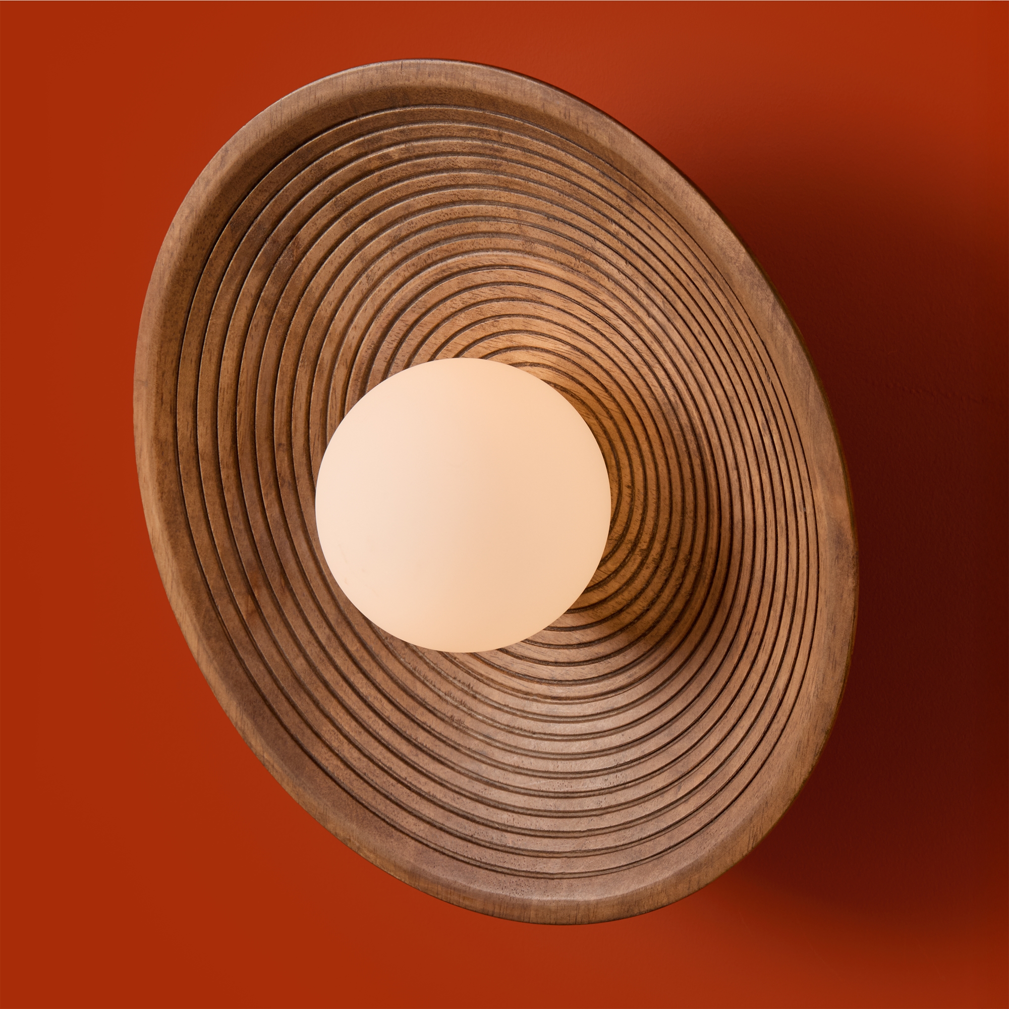 Арматура - металл. Деревянные абажуры с рельефом в стиле Бали. Белые стеклянные плафоны мягко рассеивают свет. Лампы E14/G9 (не включены). Идеальный выбор для тех, кто ценит интерьеры с ноткой природы.